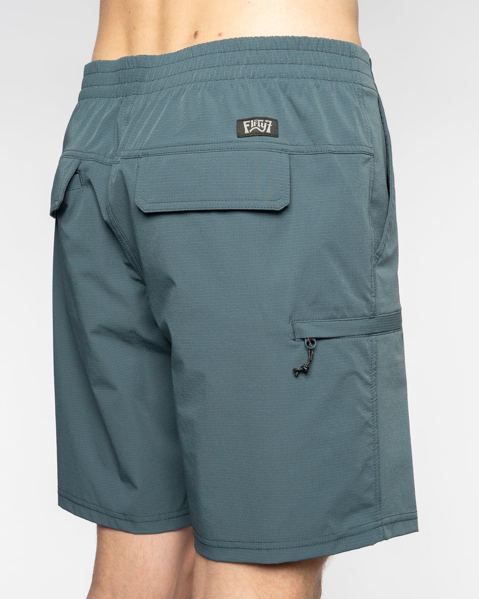 Splash into fun with our 17" Offshore Boardshorts! These playful shorts sport a secure button waist and comfortable 7" inseam for maximum mobility. Treasure your beach goodies in the handy mesh side pockets, zippered left pocket, or velcro back pockets. Look for the cute Fifty7 patch peeking above the right back pocket – it's your signal to dive in and make waves!