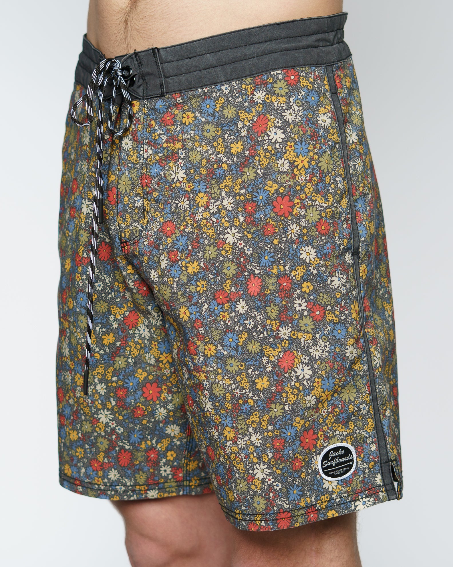 Get ready to ride the waves in style with our 18" Swami Boardshorts. These shorts feature a fixed waist and drawstrings for a perfect fit, as well as convenient side and back pockets. You'll love the small Jack's Surfboard patch on the front left side. Hang ten, dude!