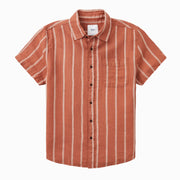 The Alan Shirt features a custom vintage-inspired striped allover pattern atop a breathable cotton/linen button-up woven shirt.