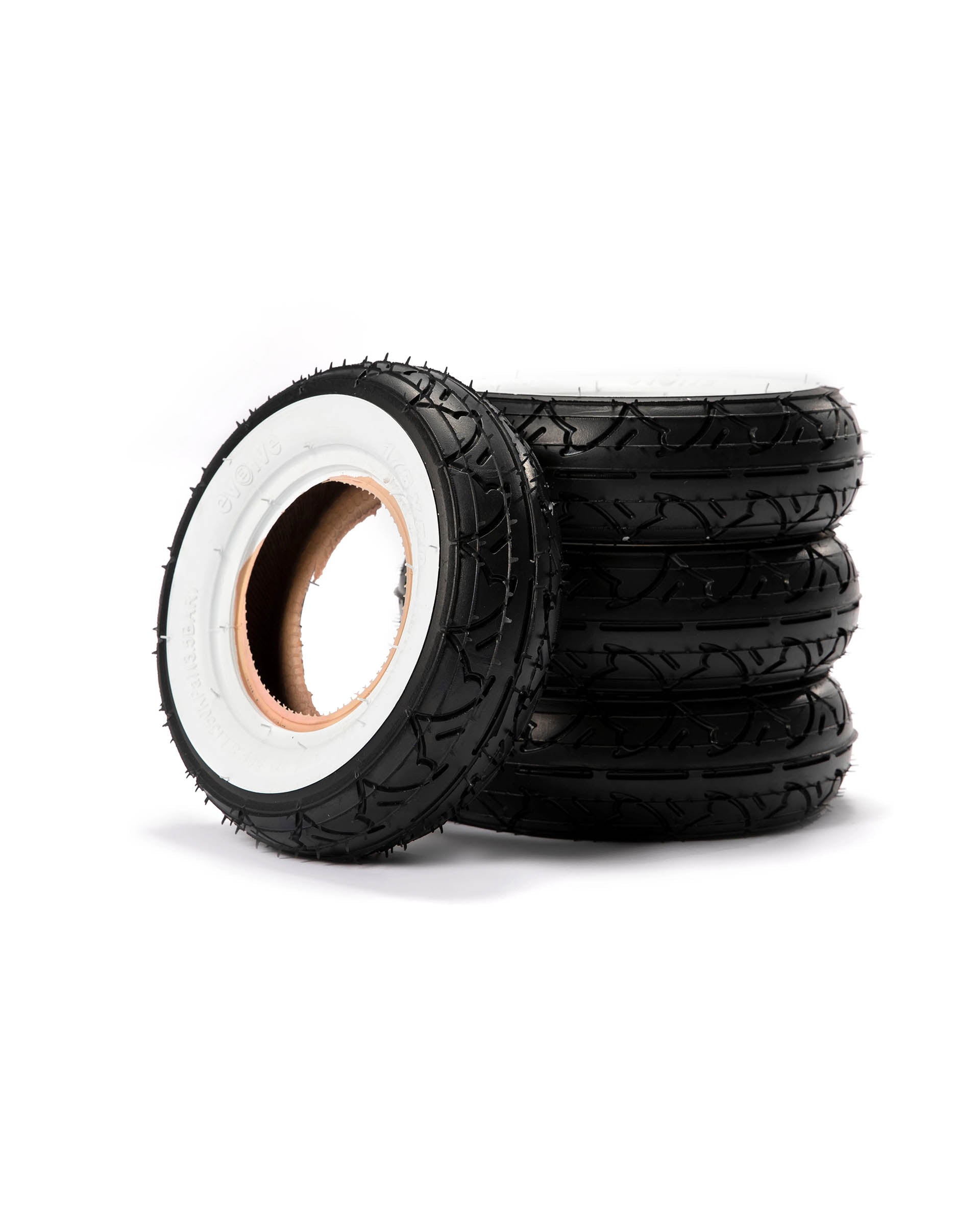 We've taken all that we love about pneumatic skateboard tyres, and bundled them together to make a tyre designed specifically for use with the rigours of the electric skateboard. Strong sidewalls mean more tyre strength, thick hard compound rubber to make them last longer than ever before, and a tread pattern that will give you a smooth ride no matter what path you choose! We recommended you keep your tyre pressure at 40-45psi. If you notice any decrease in your range, be sure your tyres are pumped up! More info here. Please note, you will need the compatible 66T drive gears, GT-001 belts, 7" inner tubes and hubs to use these tyres. For more information, please see our Wheel Guide.