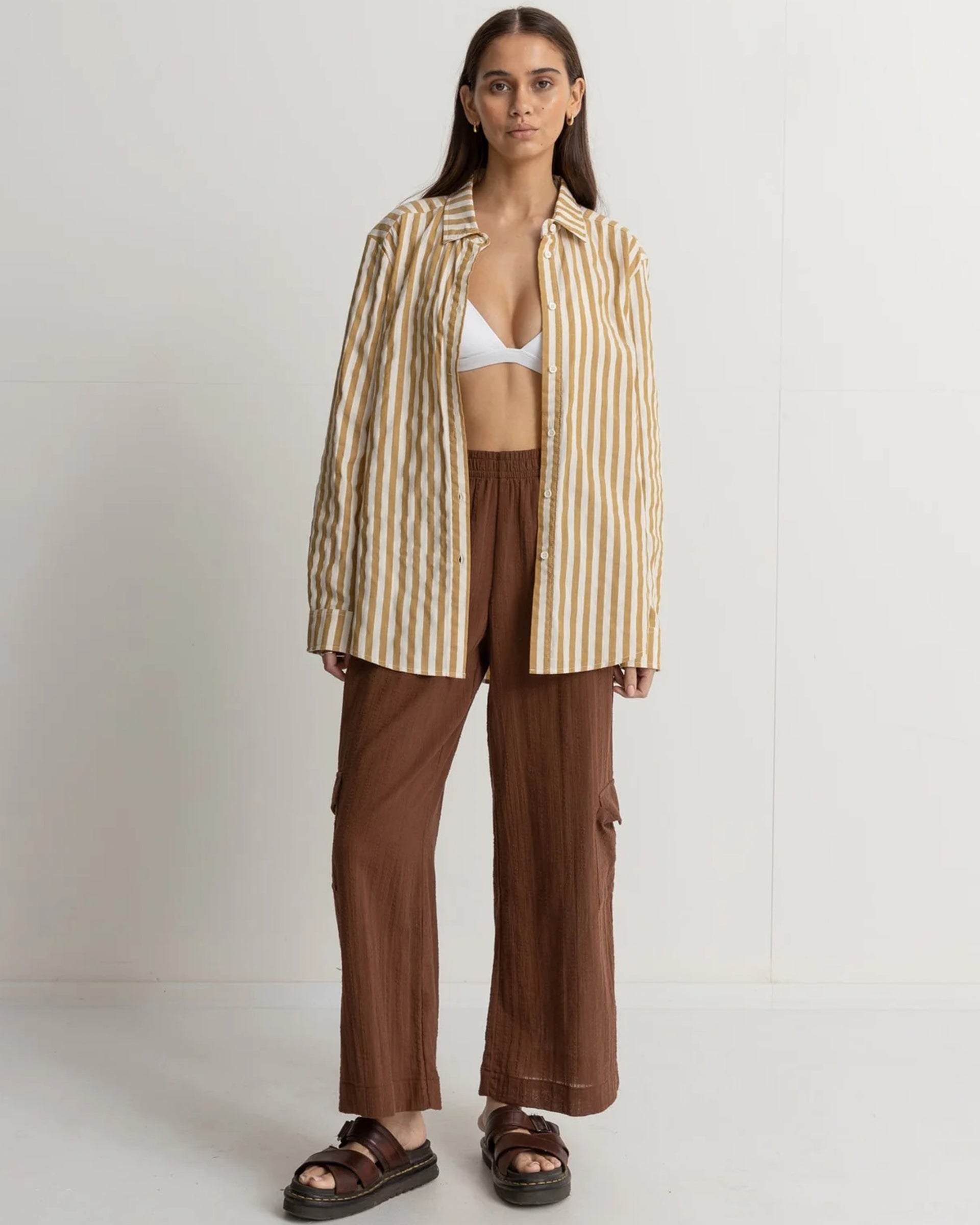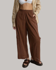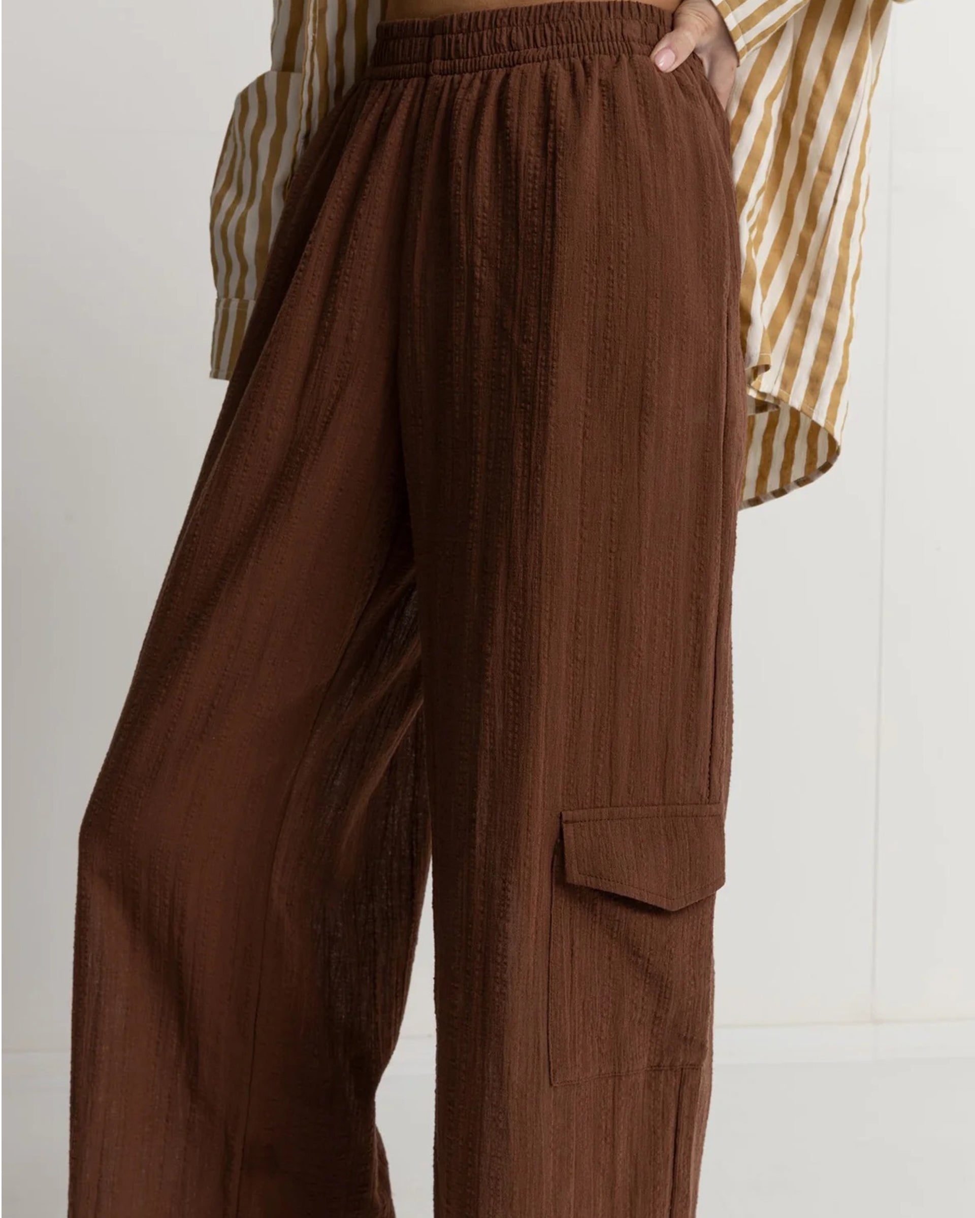 The Amalfi Cargo Pant in rich chocolate is the perfect addition to your wardrobe. Made from a textured cotton material, these pants feature cargo pockets on the mid-leg for a touch of utility-inspired style.