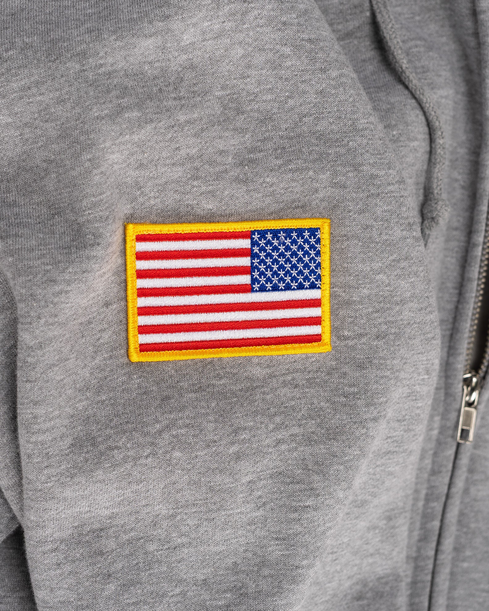 American Diamond Patch Zip-Up Hoodie - Heather Gray