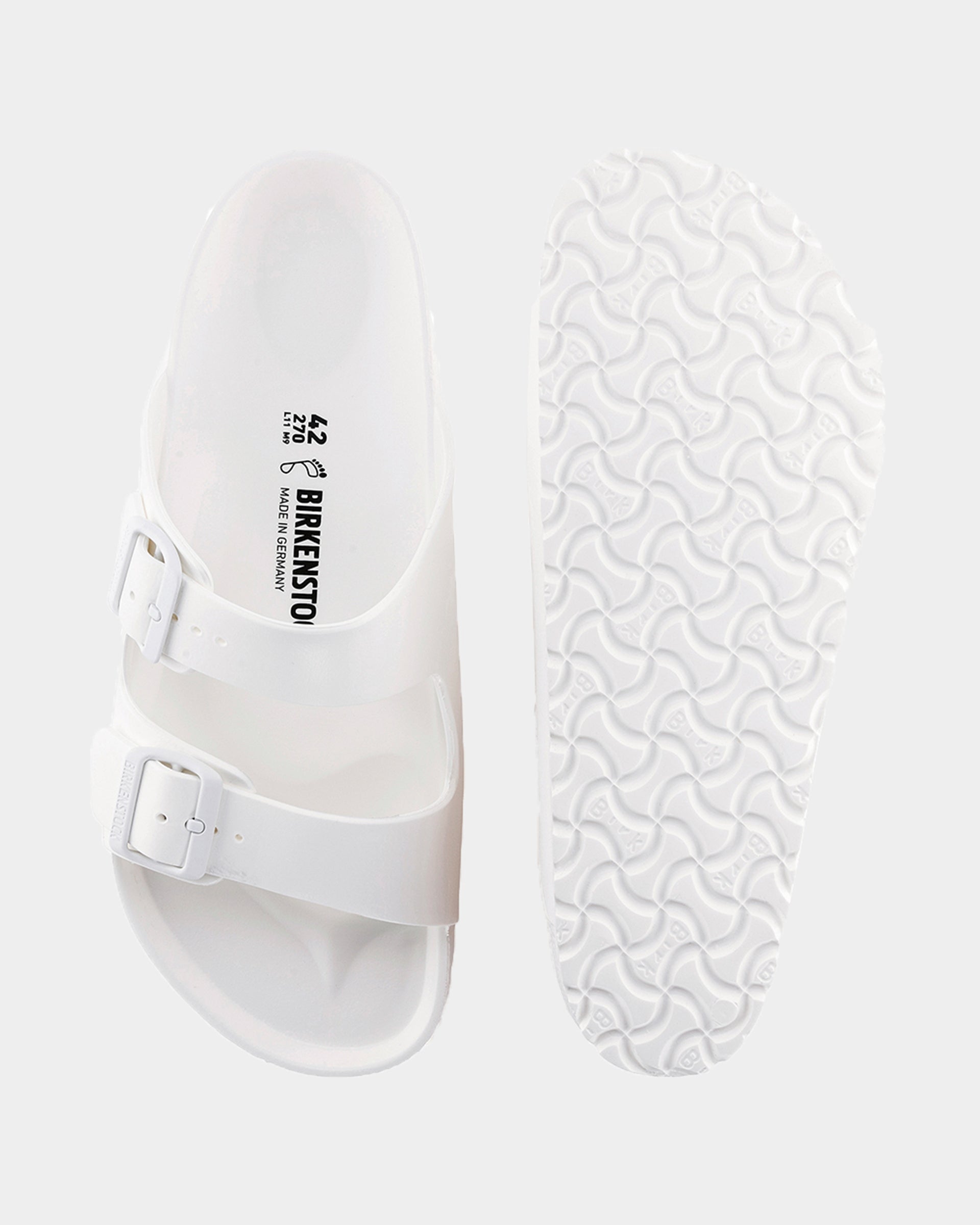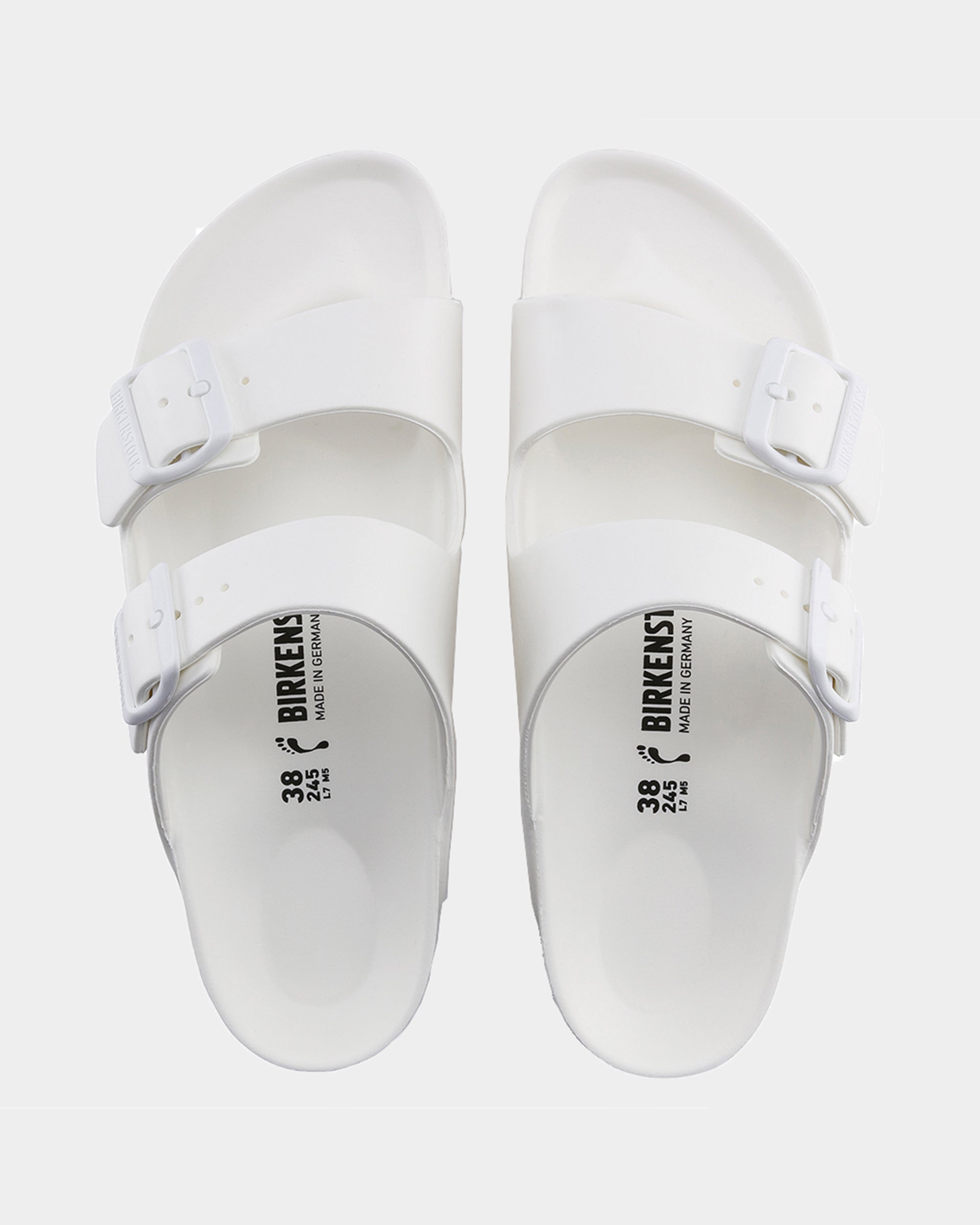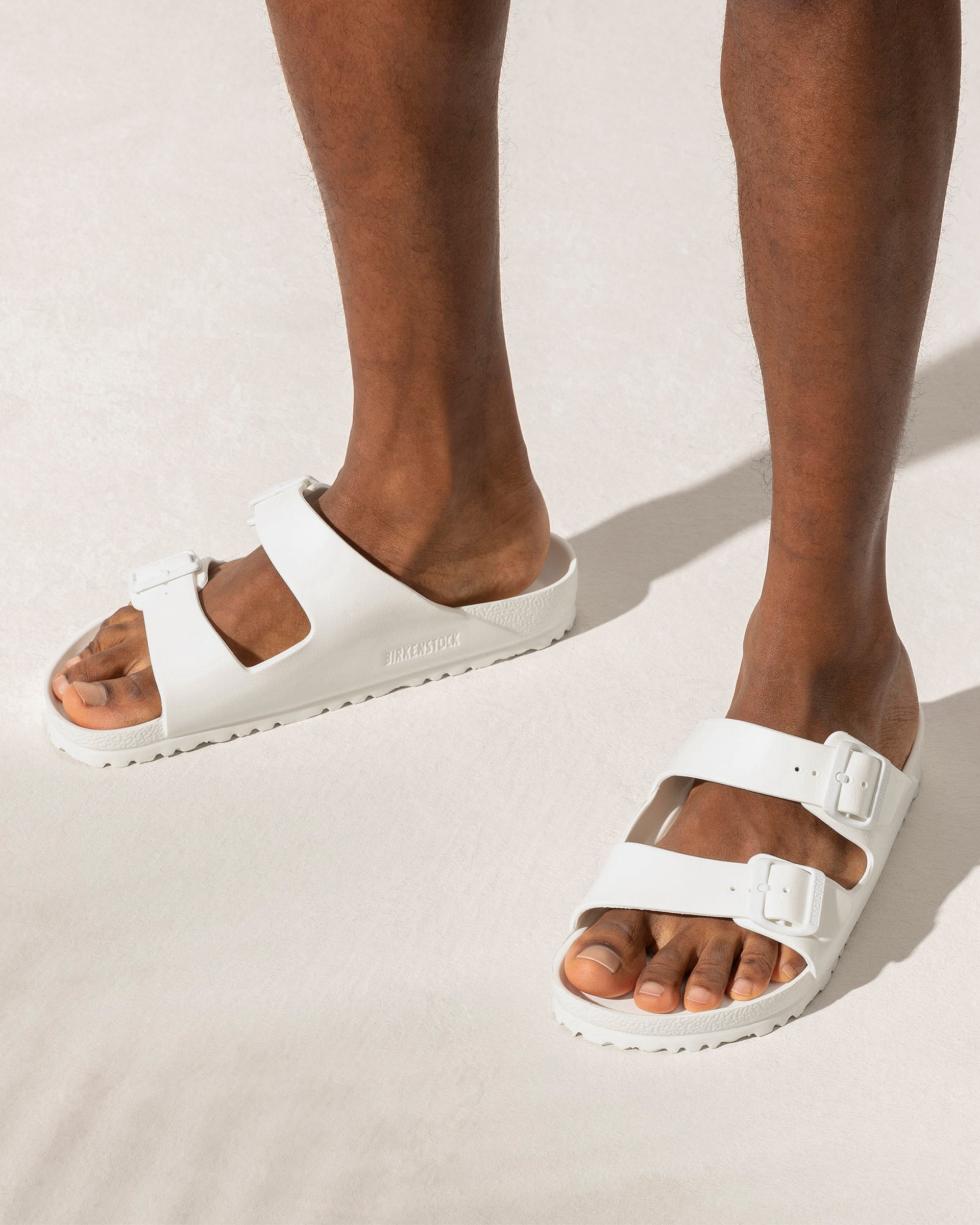 The legendary two-strap design from BIRKENSTOCK - the Arizona. Modeled on the cork original, this sandal is made from ultra lightweight and highly flexible EVA. These sandals are shock absorbing, waterproof, and skin-friendly. Wear them at the beach, in the garden, or around the gym and after workouts. It's the perfect addition to your classic BIRKENSTOCK sandals.