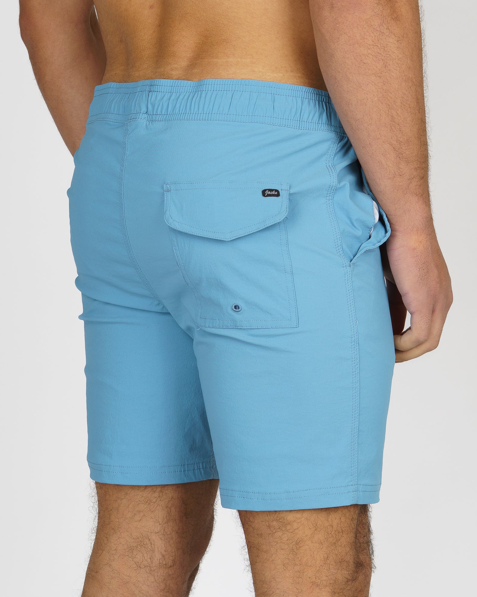 Get ready to ride the waves in our Ashton Boardshorts! Designed with an elastic waist for a comfortable fit, drawstrings to keep them in place, and multiple pockets for all your beach essentials. Plus, the small Jack's Surfboard patch adds a touch of cool to the color. Surf's up, dude!