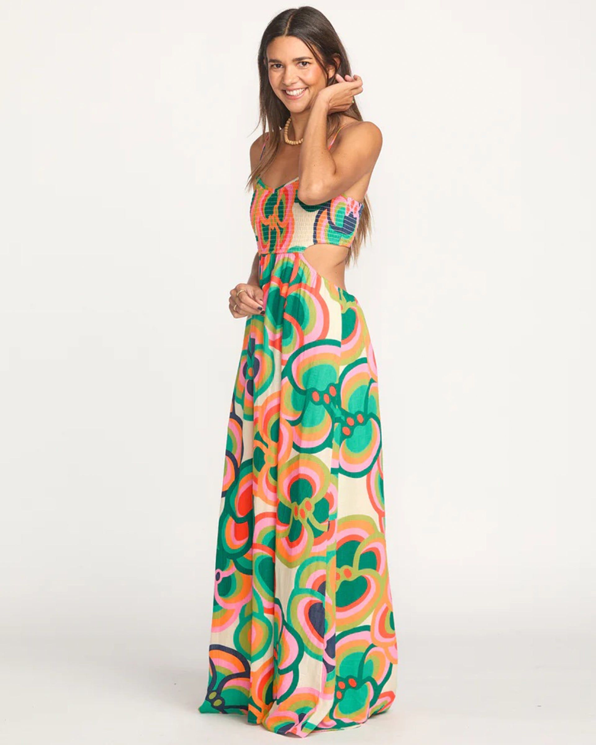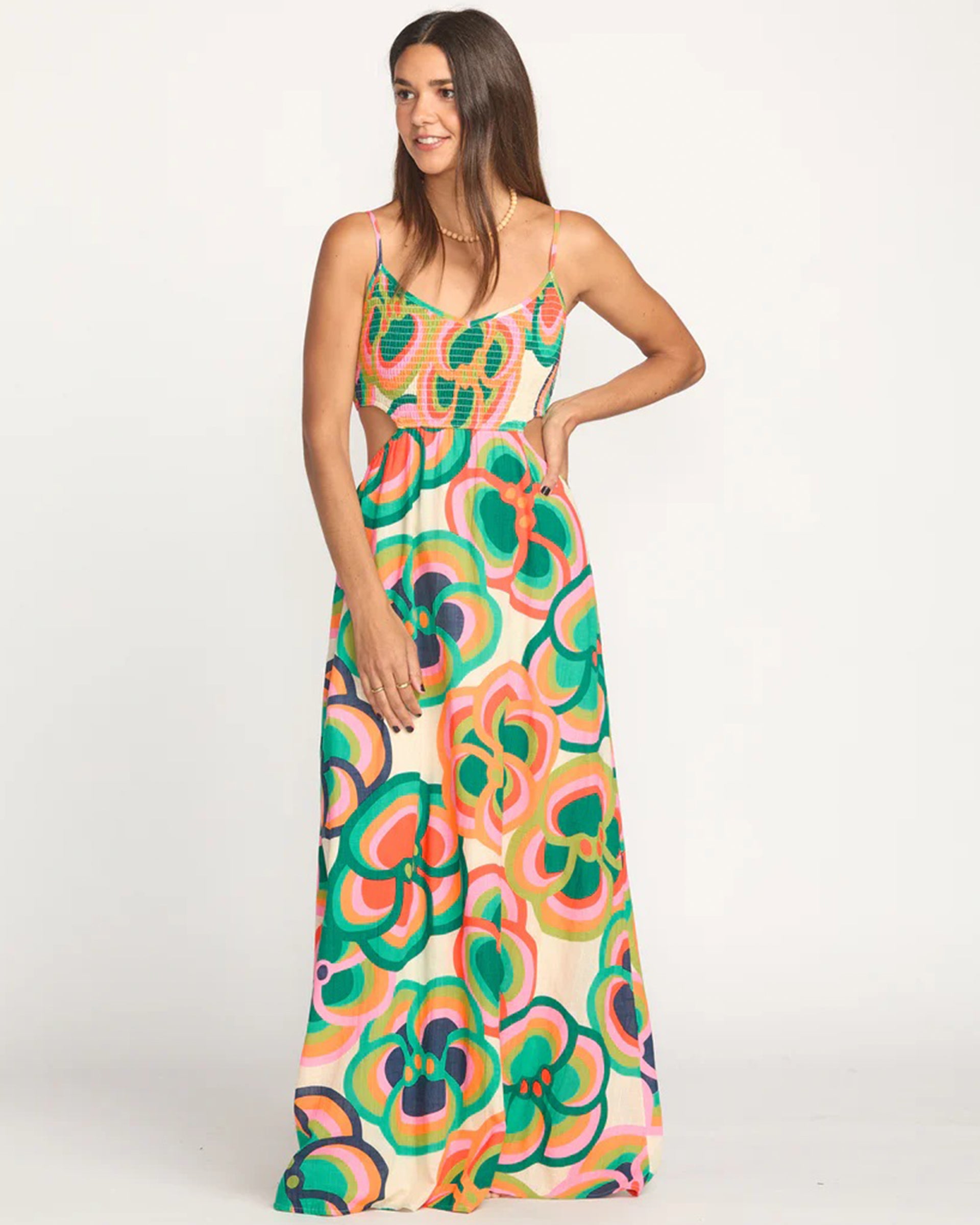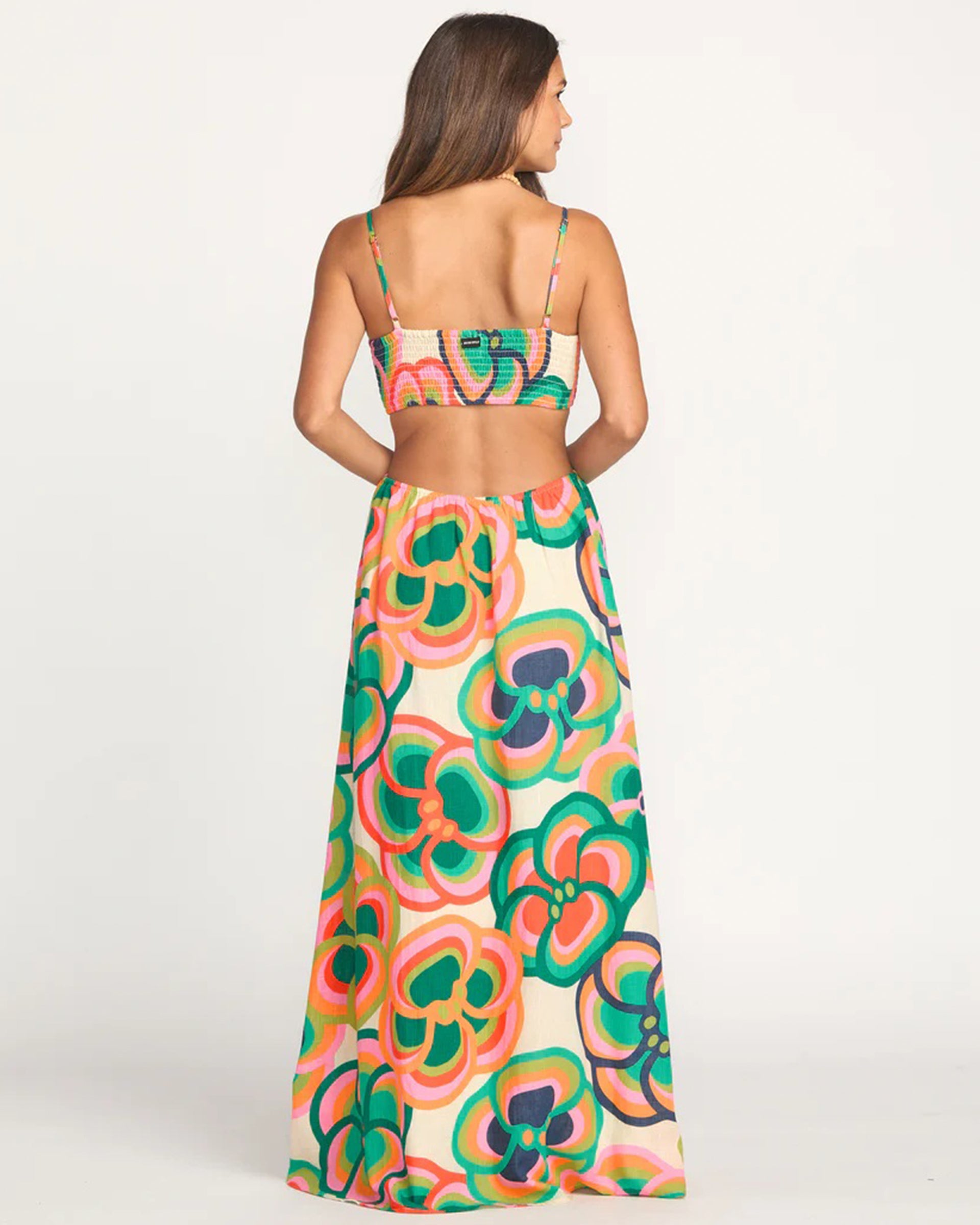 Our Billabong x Mami Wata True Desire Dress features stunning violet graphics on a fitted cotton bodice, flowy skirt, and bold cut-outs. This graphic pays homage to the vibrant violets native to East Africa, growing in the tropical rainforests of Tanzania and Kenya. Add in some Breezy spaghetti straps and you have a warm-weather stunner.