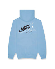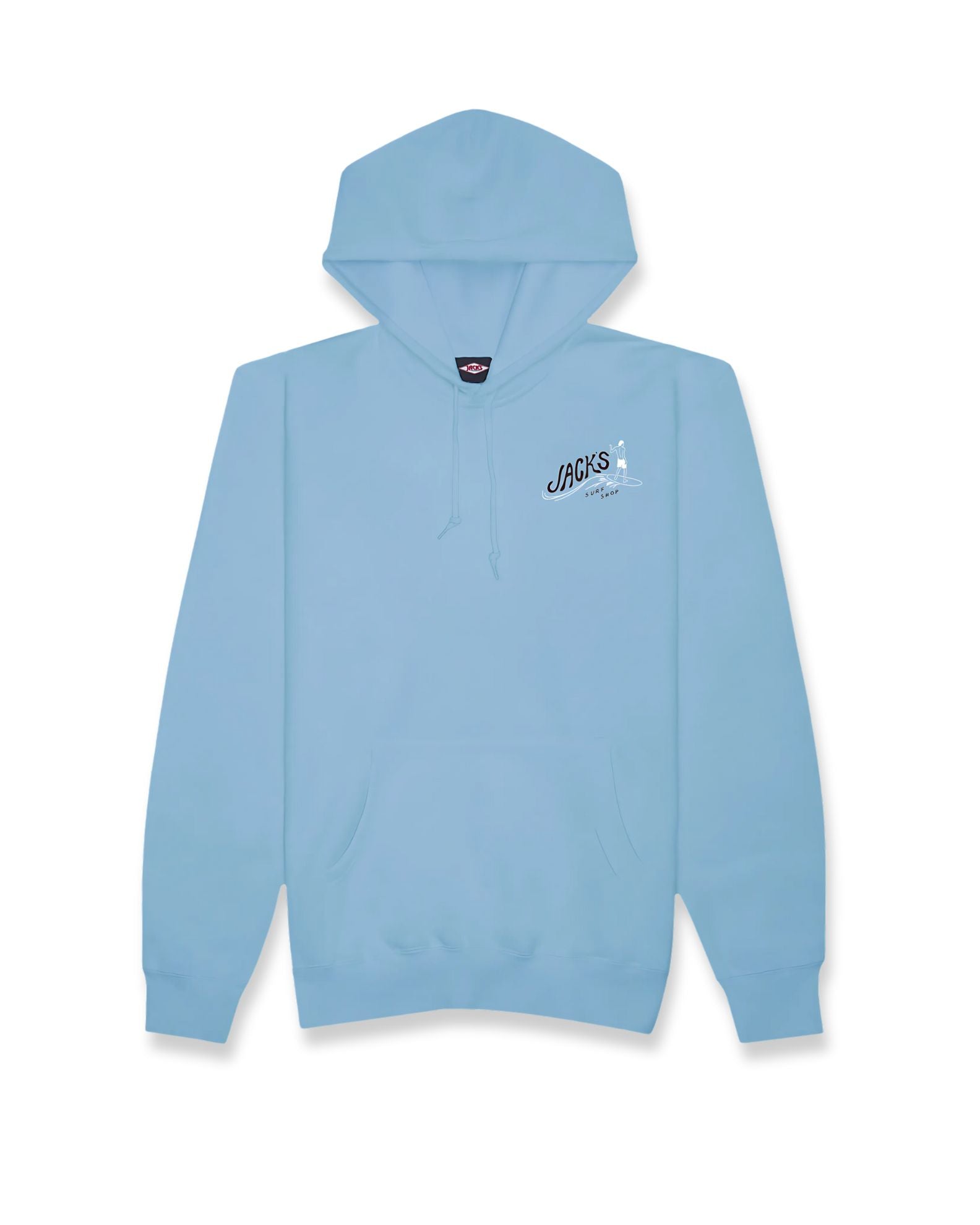 Stay cool and comfy with the Bobber Summer Series Pullover Hoodie in vibrant blue. Featuring a large Jack's Surfboards bobber graphic on the back and a small matching print on the left chest, this hoodie brings surf vibes wherever you go. The relaxed fit, cozy hood, and handy kangaroo pocket make it perfect for beach days or casual hangouts. Dive into summer fun with style and ease!