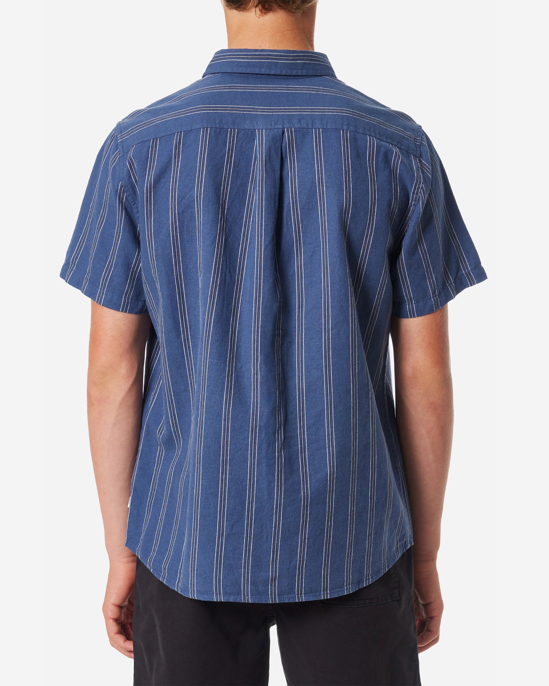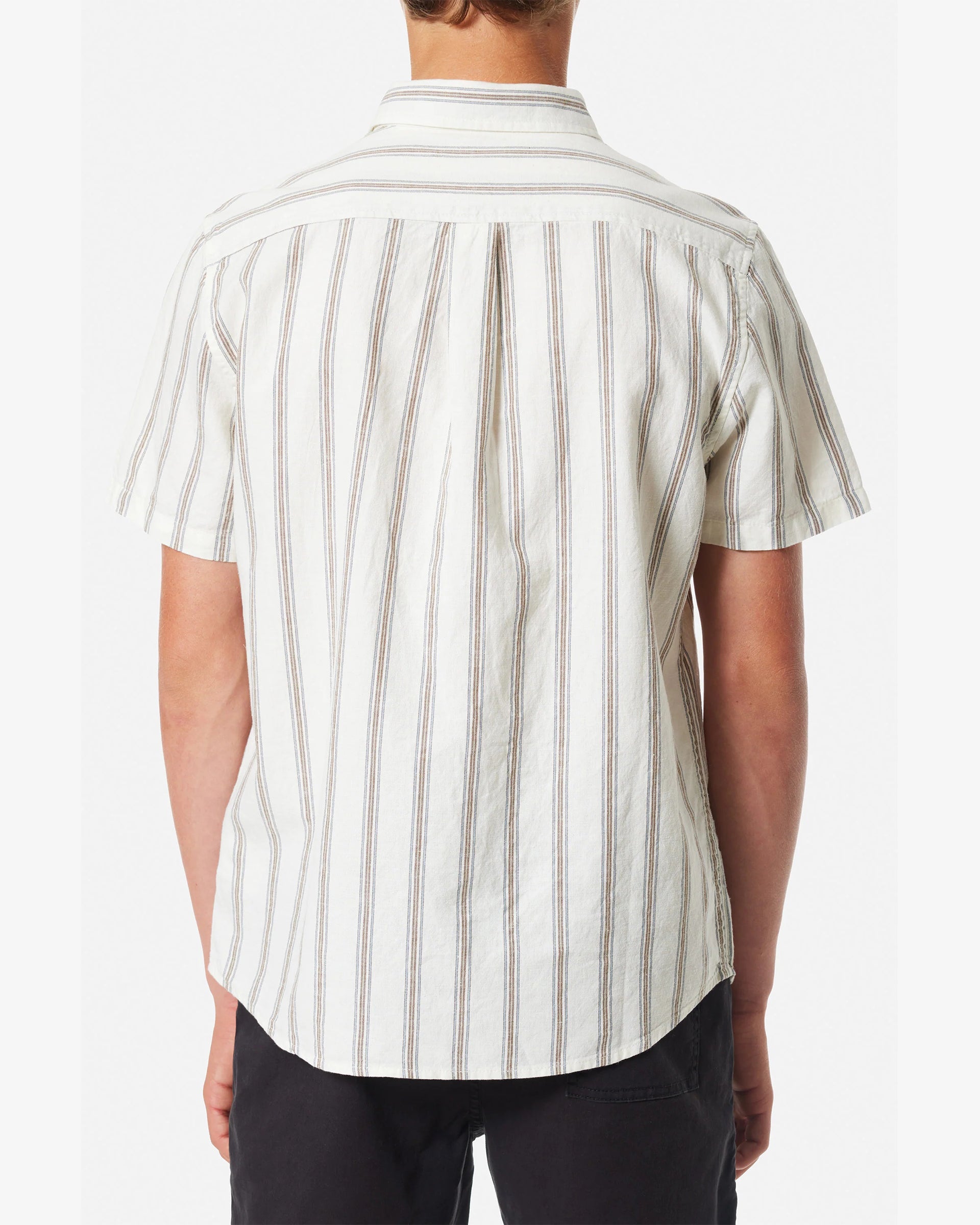 Crafted from a durable and breathable blend of cotton and linen, the Strum Shirt boasts a timeless yarn-dyed stripe pattern suitable for both casual and formal wear. Perfect for day or night.