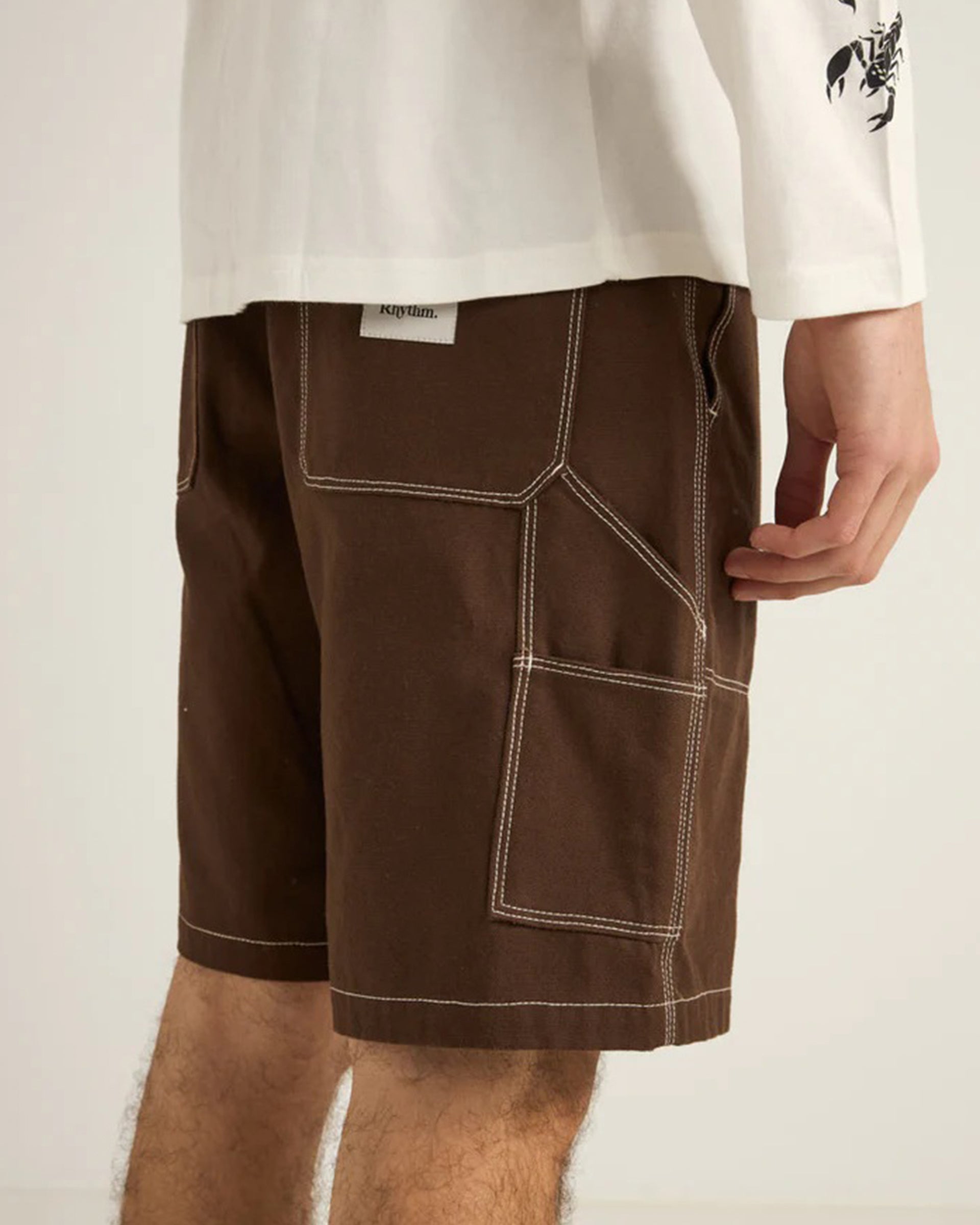 Embrace durability and style with the Carpenter Canvas Short in Chocolate. Crafted from 13oz cotton, these shorts feature a 20-inch outseam, metal shank closure, and multiple pockets. Ideal for beachside projects and urban explorations, they provide a rugged look with Rhythm trims, ensuring you stay stylish and prepared for any adventure.