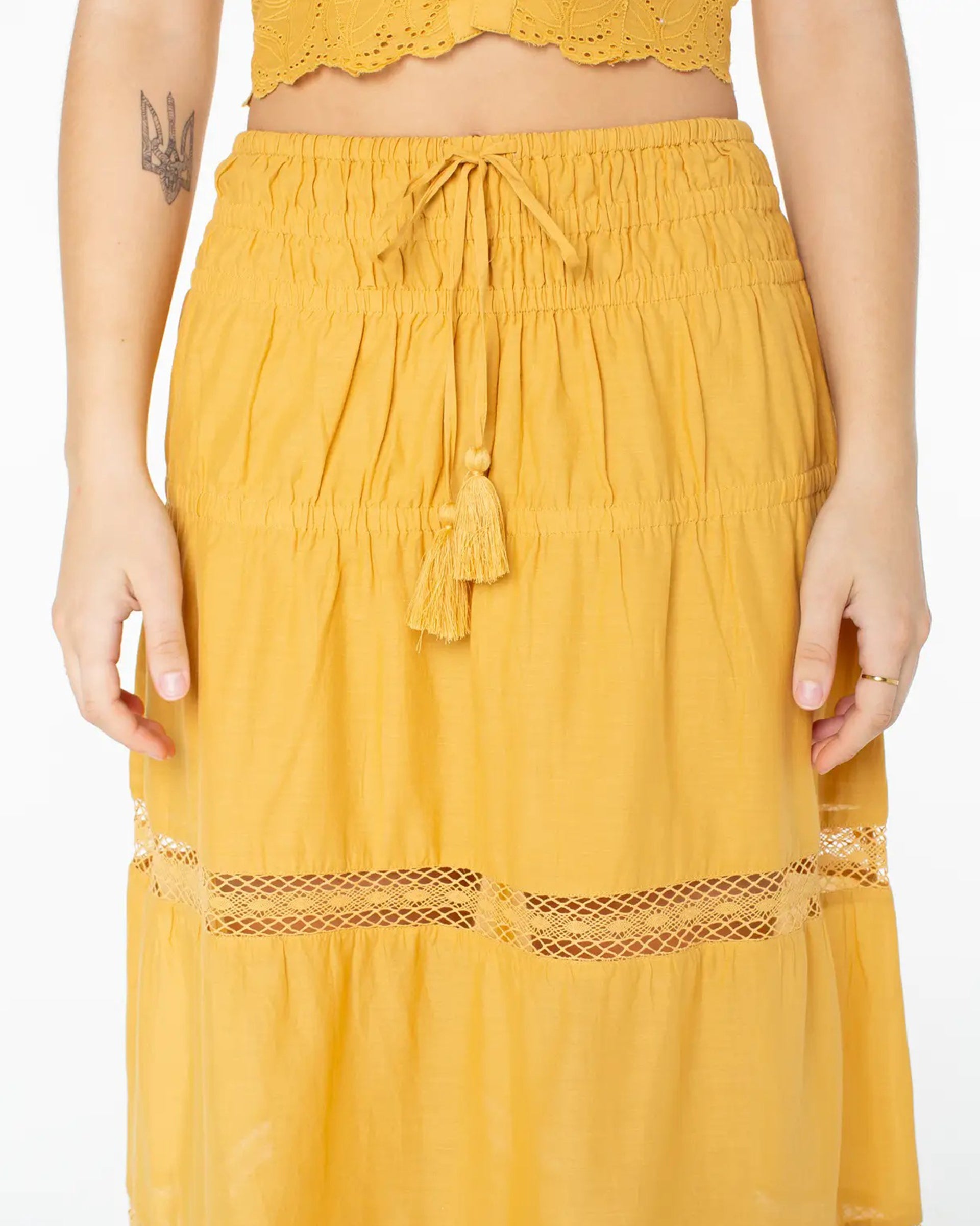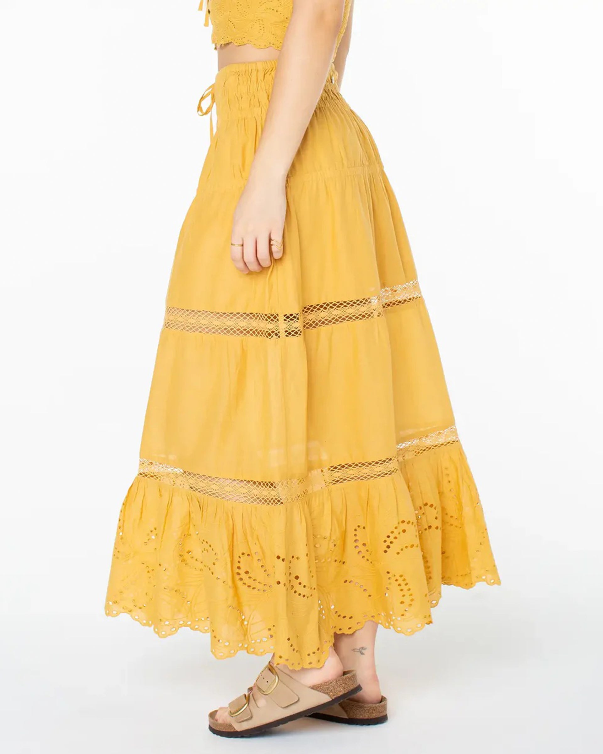 A fresh take on a summer skirt, the Castaway Maxi makes a statement while easily being a staple. Featuring flirty cutout details and an accented drawstring waist, this skirt is perfect for any coastal occasion.