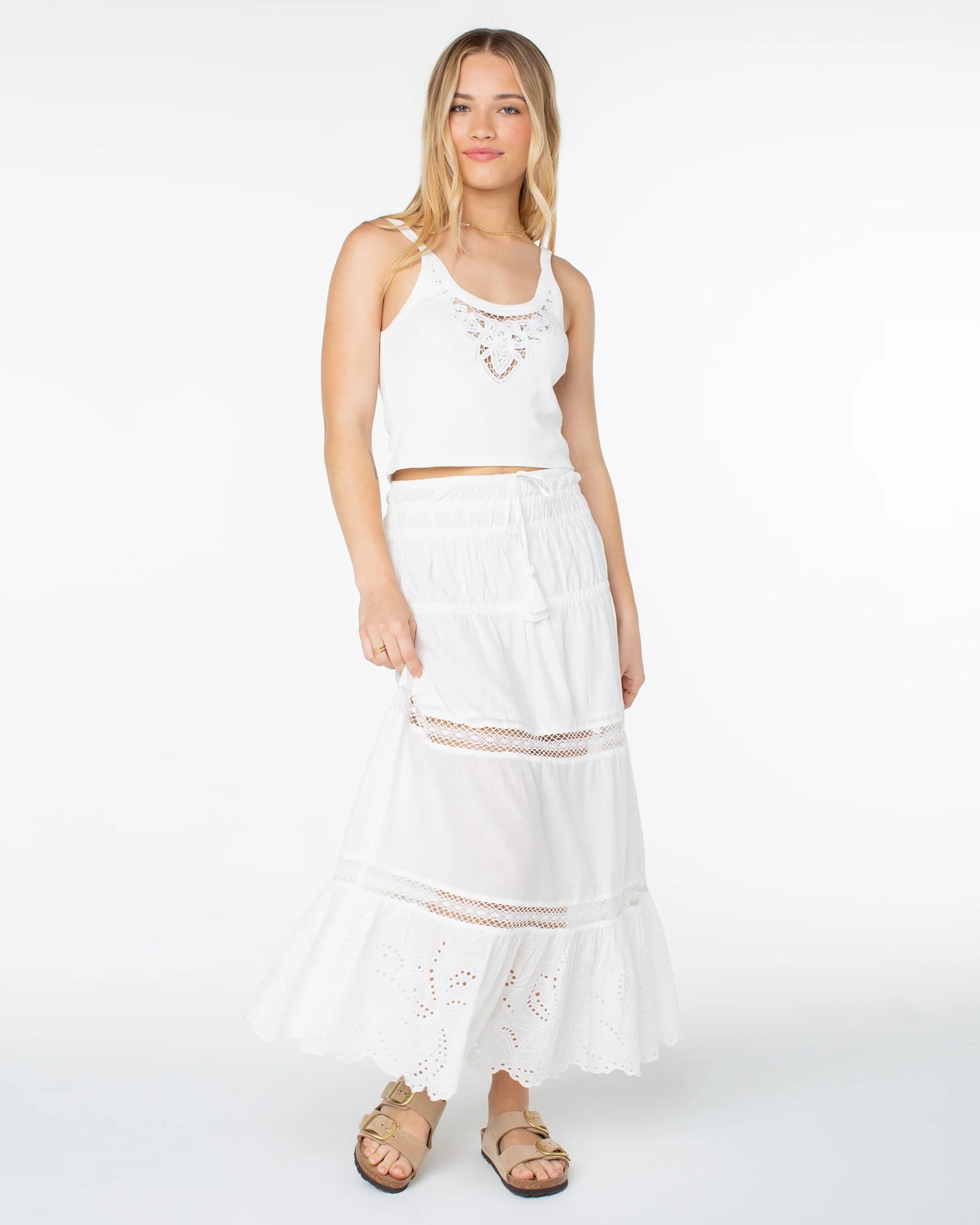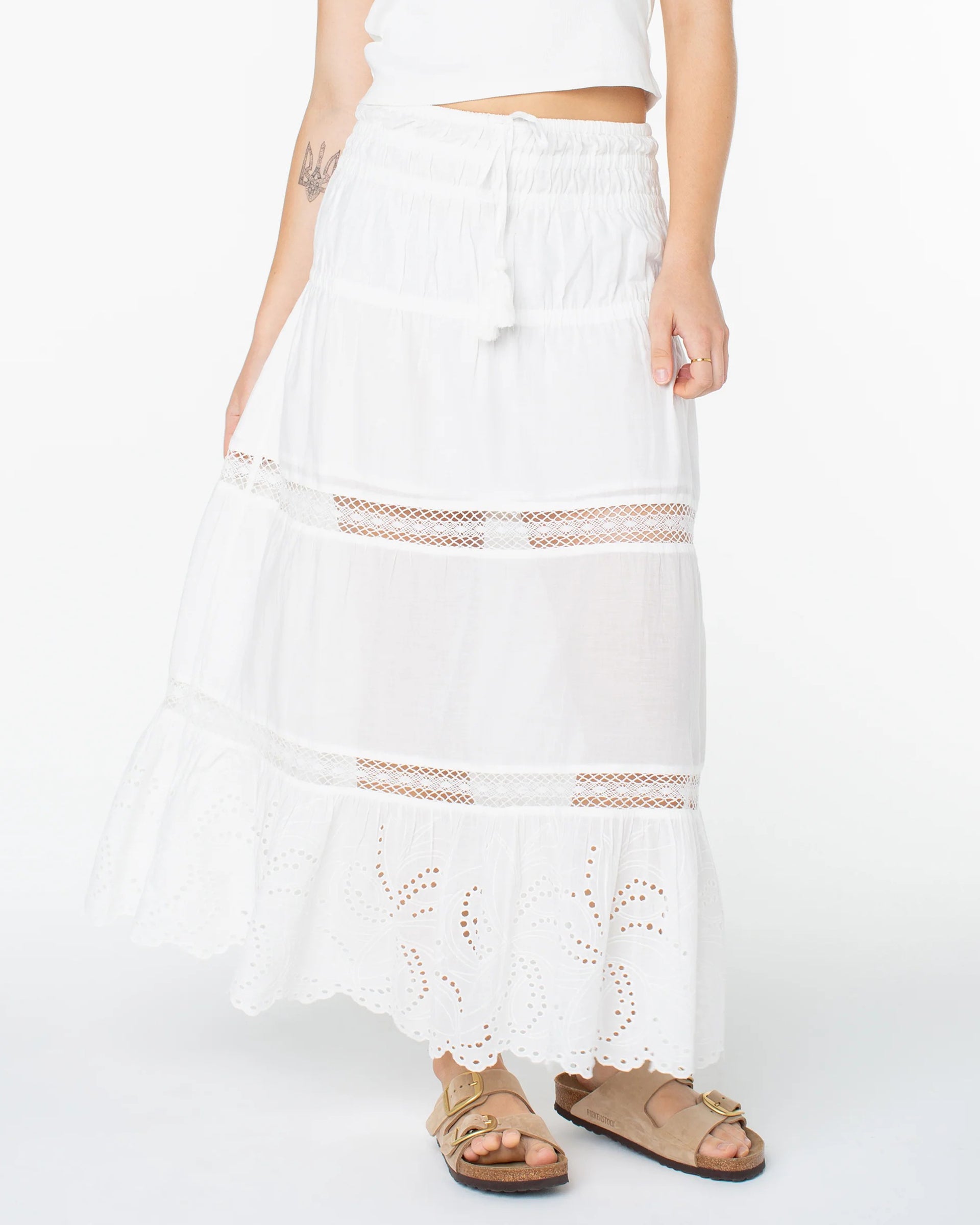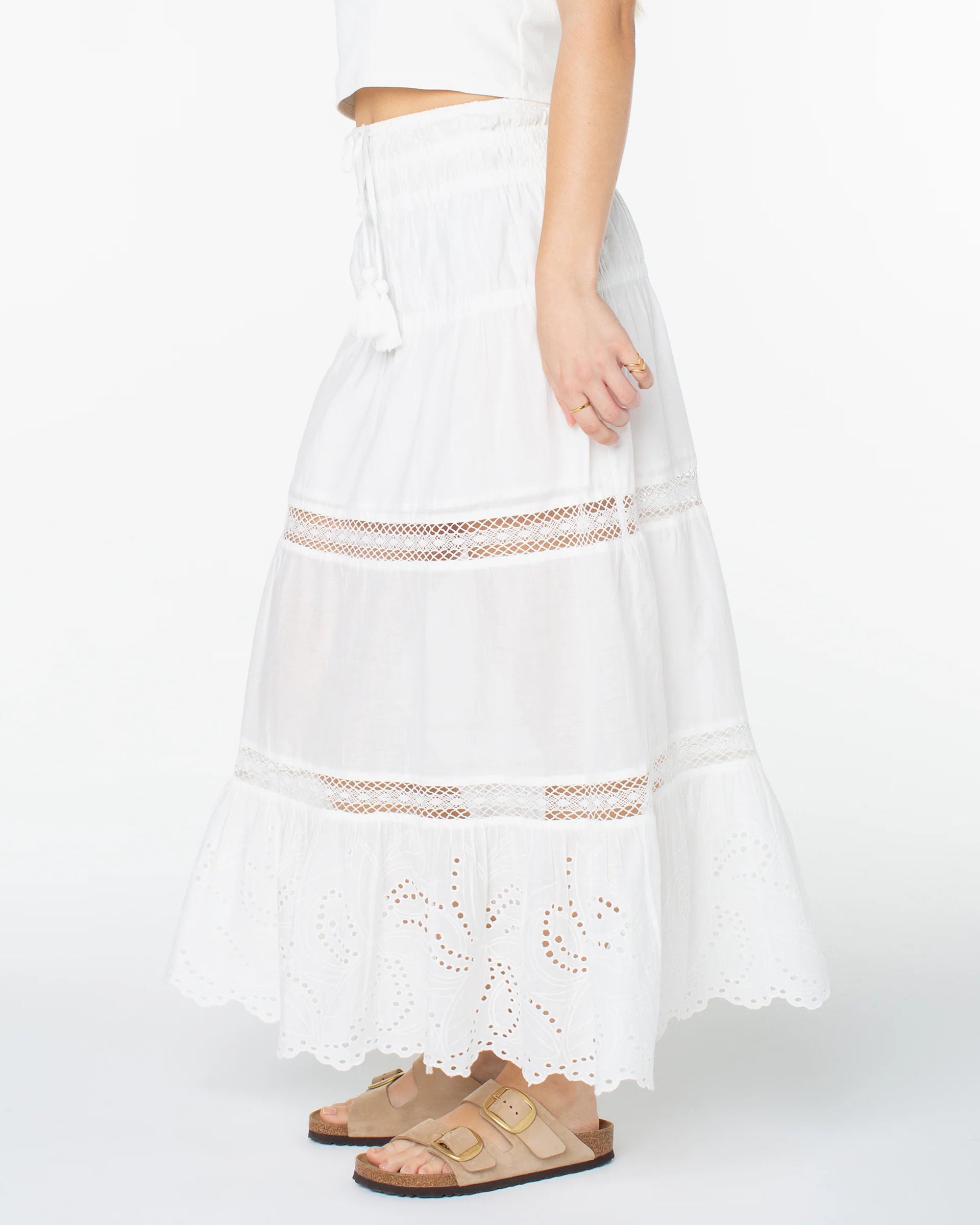 A fresh take on a summer skirt, the Castaway Maxi makes a statement while easily being a staple. Featuring flirty cutout details and an accented drawstring waist, this skirt is perfect for any coastal occasion.