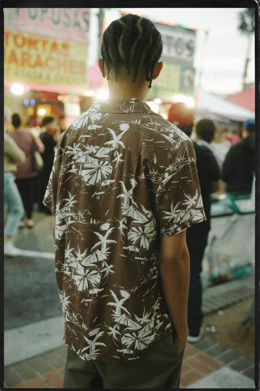Charter Slub S/S Woven Shirt - Sepia Umbrella Scene