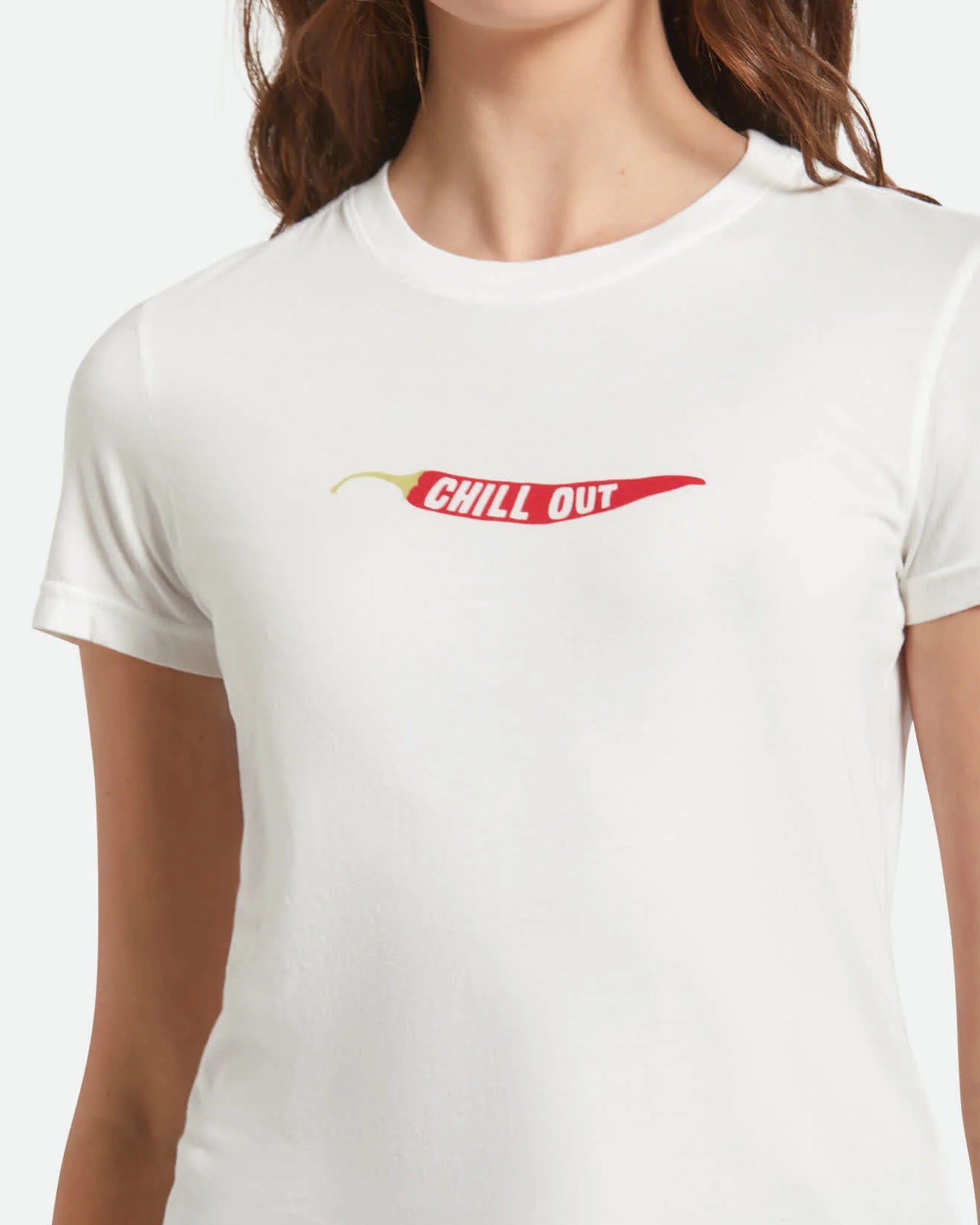 Add a little spice to your wardrobe with the Chill Out Fitted Crew T-Shirt. Designed with a timeless slim fit, this women’s tee brings a bold touch to your everyday basics, thanks to its chili pepper front screen print. Crafted with garment dye and a worn wash, it offers a soft, broken-in feel that instantly feels like an old favorite. Rib neck binding enhances both comfort and durability, making it an easy go-to for casual outings or layering up your look.