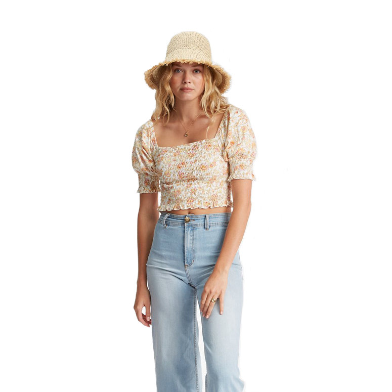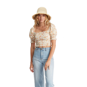 Summer is the season for fitted crop tops and puff sleeves. Lucky for you, the Coastal Sands top has them both. It features a playful floral print on lightweight cotton jersey, plus a comfortable shape and easy style that pairs well with your summer bronze.