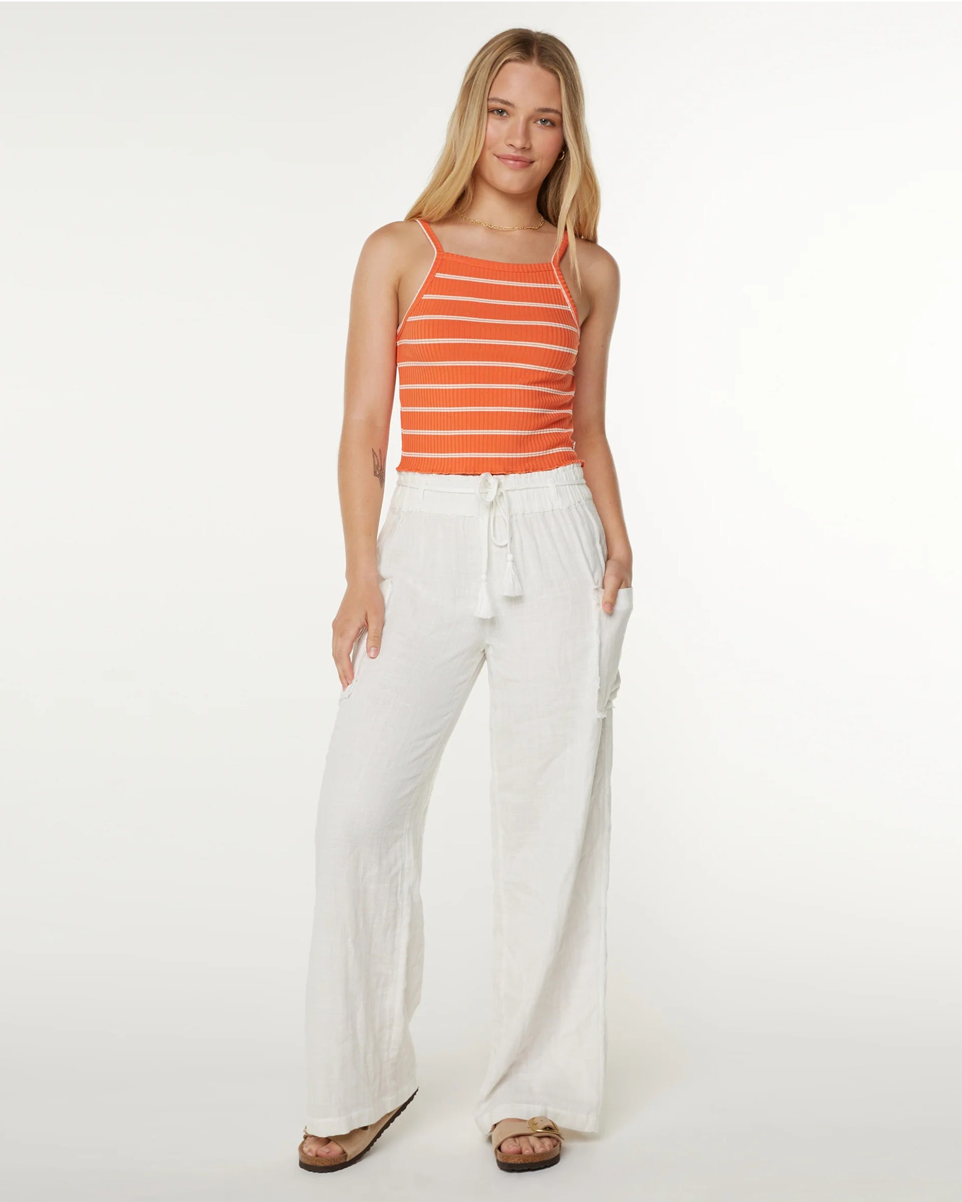 Embrace all the chic coastal vibes with the Cool Sunsetz tank. Featuring a high neck fit and a thin stripe pattern, this piece is the perfect elevated summer staple.
