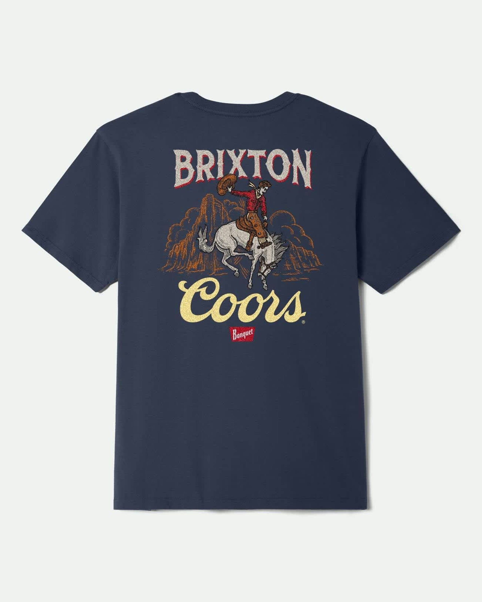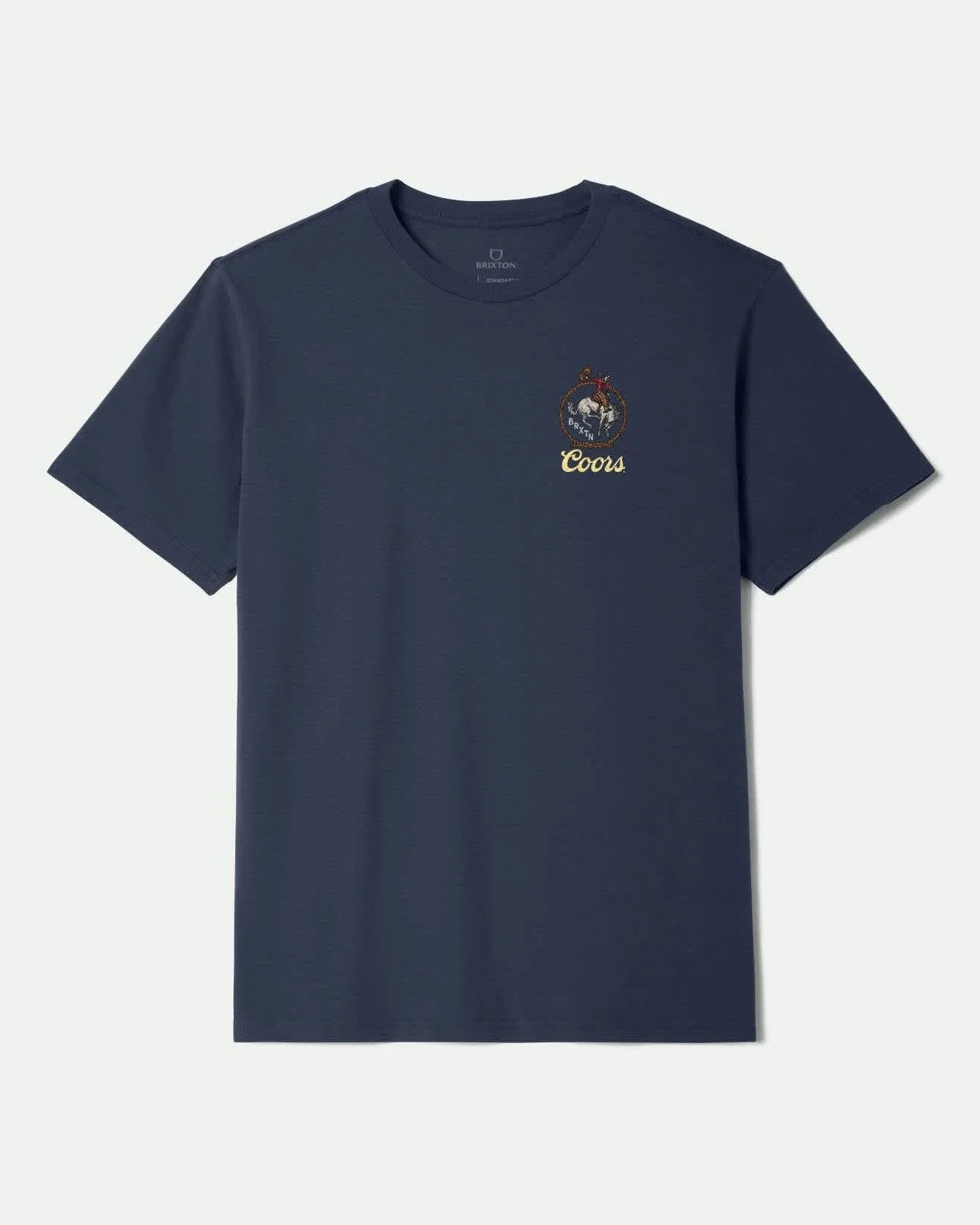 Find your next great adventure with Brixton X Coors. This 100% cotton, standard fit tee celebrates the spirit of the West with its front and back bucking bronco screen prints.