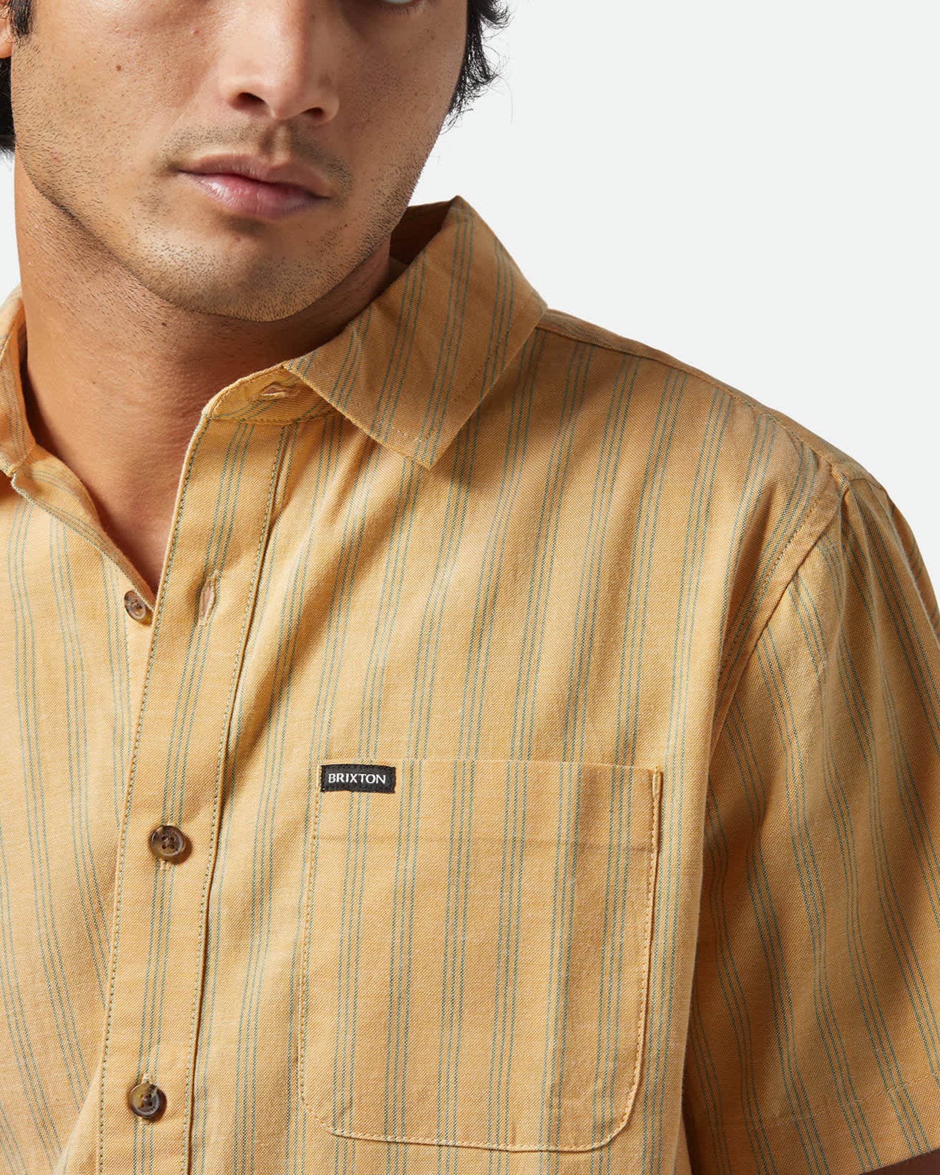 Cru Oxford Stripe S/S Shirt - Curry/Ivy Green Stripe