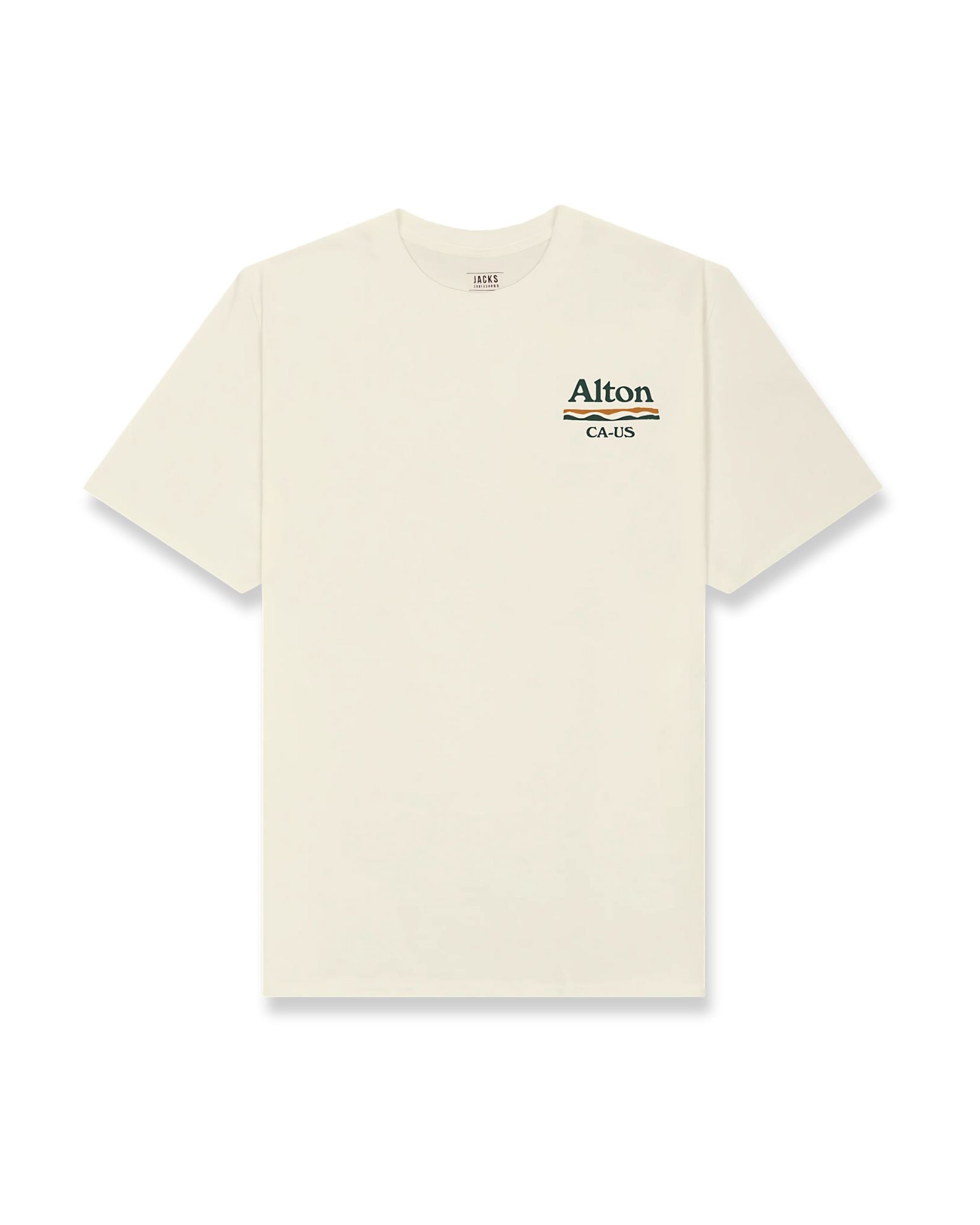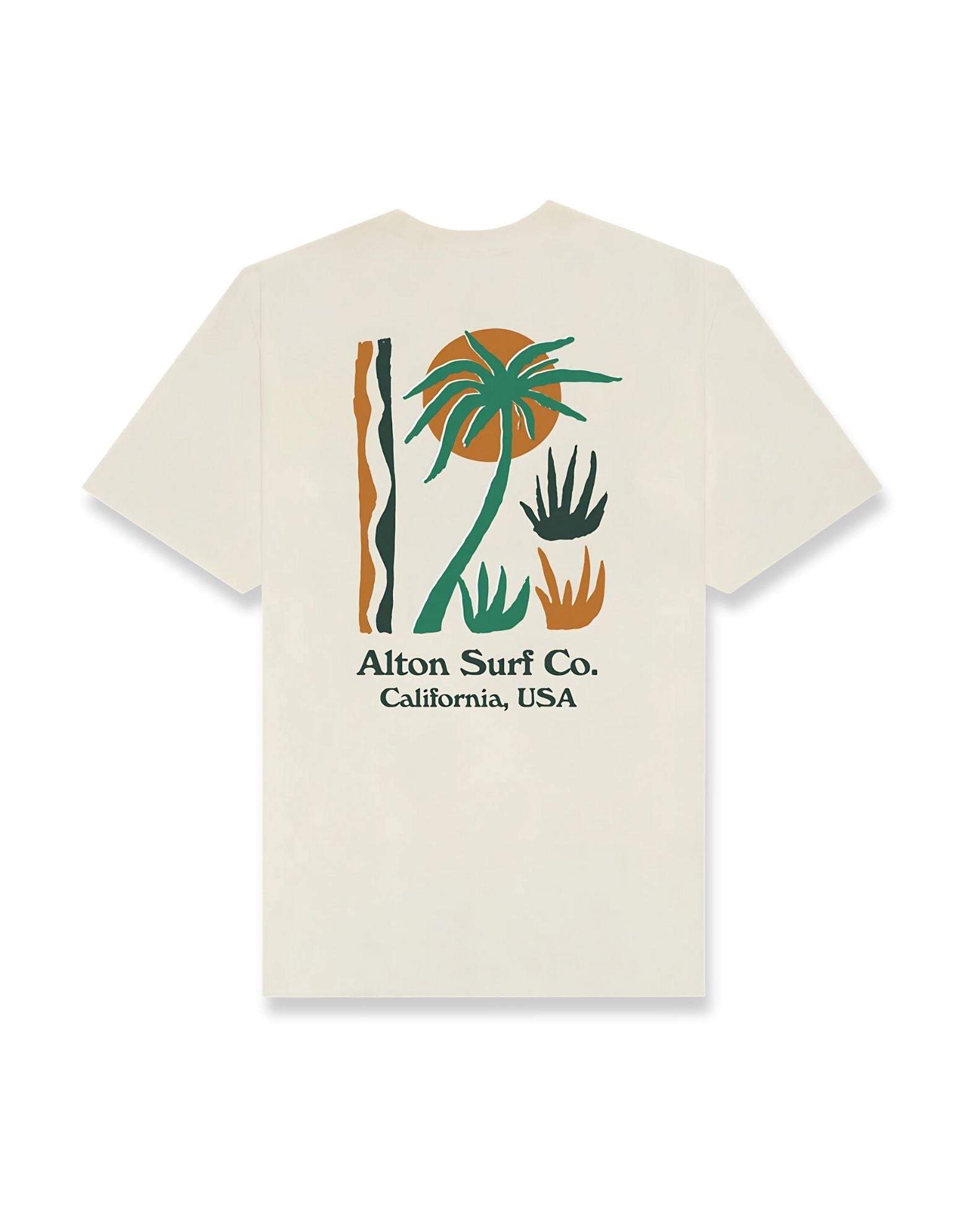 Embrace laid-back vibes with the Deserted S/S T-Shirt, featuring a classic width and rib collar for comfort that lasts all day. Its seamless body ensures a smooth fit, while the large, colorful graphic on the back showcases a palm tree sunset scene with “Alton Surf Co. California, USA.” A smaller “Alton CA-US” print on the front adds a cool, subtle touch. Perfect for those who love a playful nod to surf culture and sunny days.