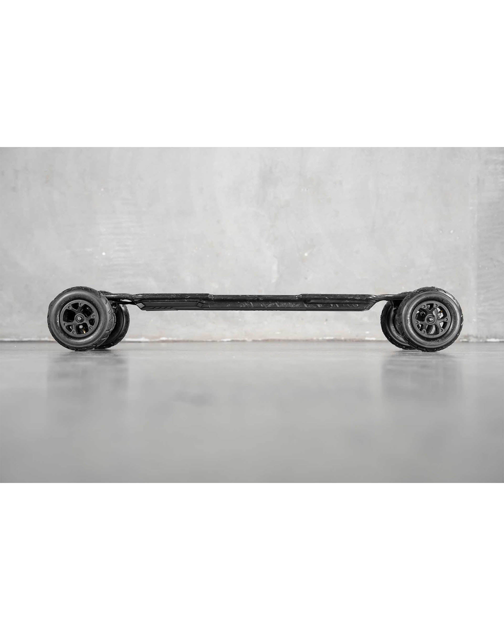 Introducing the Diablo Carbon 2-in-1, the ultimate electric skateboard that adapts to your terrain preference with interchangeable wheel setups—street wheels for urban speedsters or all-terrain wheels for off-road adventurers. Engineered for versatility and uncompromising performance, this board features a forged carbon fiber deck that balances strength and agility, ensuring a smooth and stable ride regardless of the terrain.