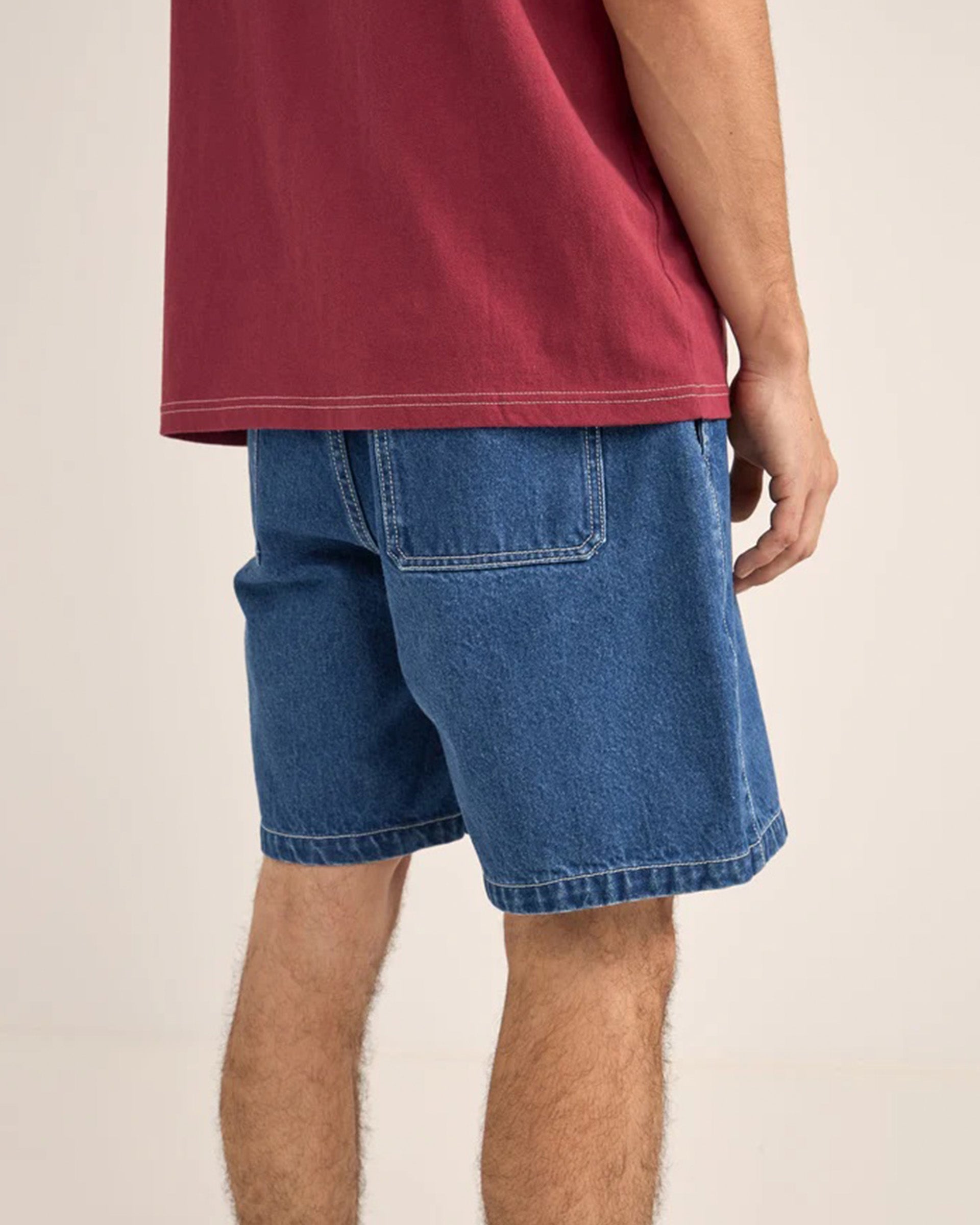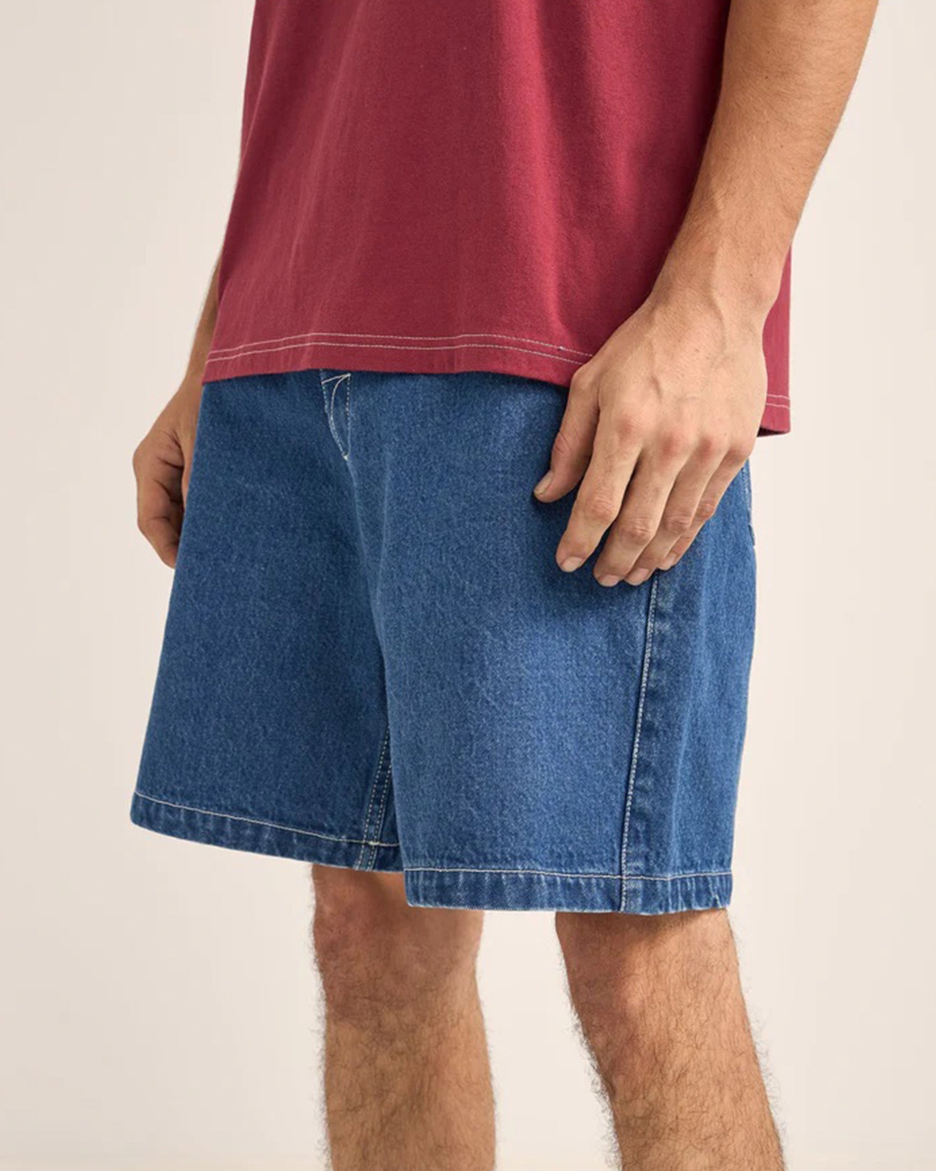 Crafted for the classics lover, the Essential Denim Shorts are made from durable 13oz cotton in a dark wash finish. They feature a metal shank closure, metal zipper fly, and practical hand and back patch pockets adorned with Rhythm trims. These shorts blend timeless style with modern comfort, perfect for everyday adventures with a 19-inch out seam.