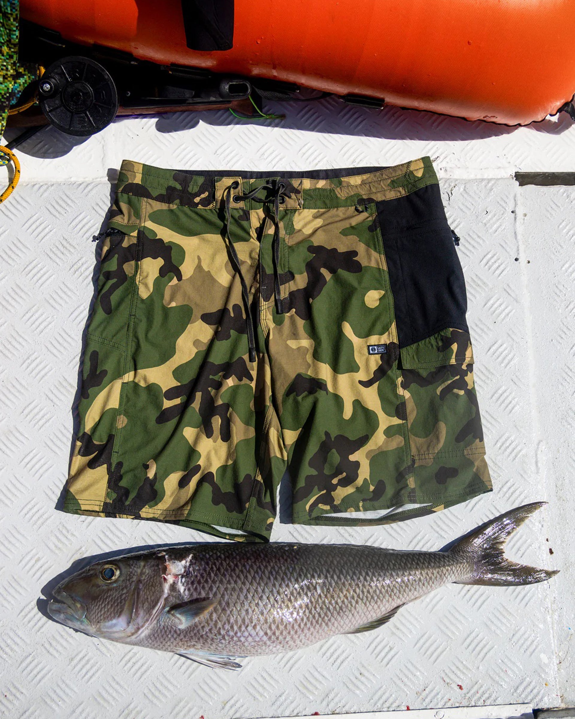 The familiar comfort and fit of your favorite boardshorts but with all the utility tech features you want on the boat. Plier pocket, phone pocket, bonus key/wallet pocket with security zipper or velcro closures. Durable quick dry fabric with performance 4-way stretch.