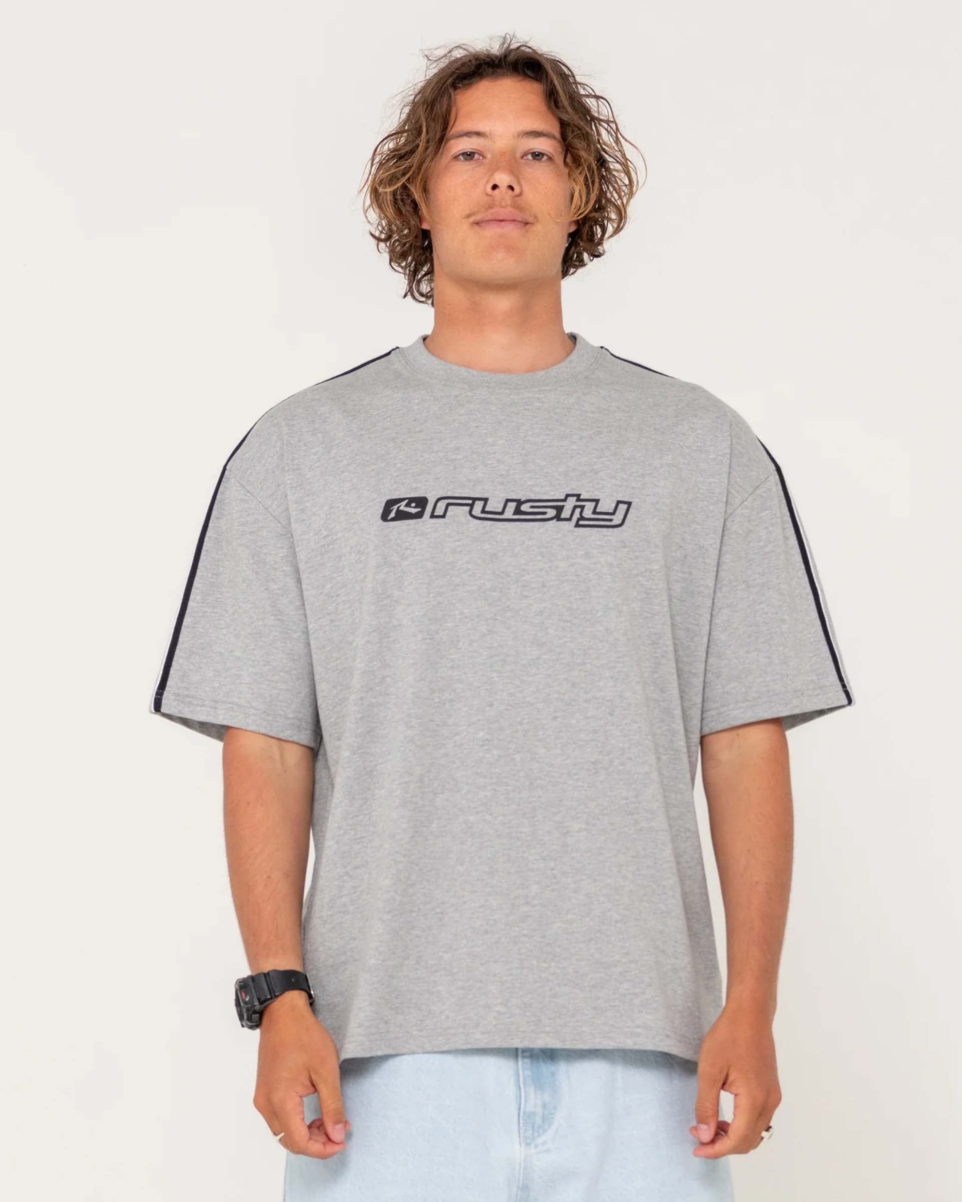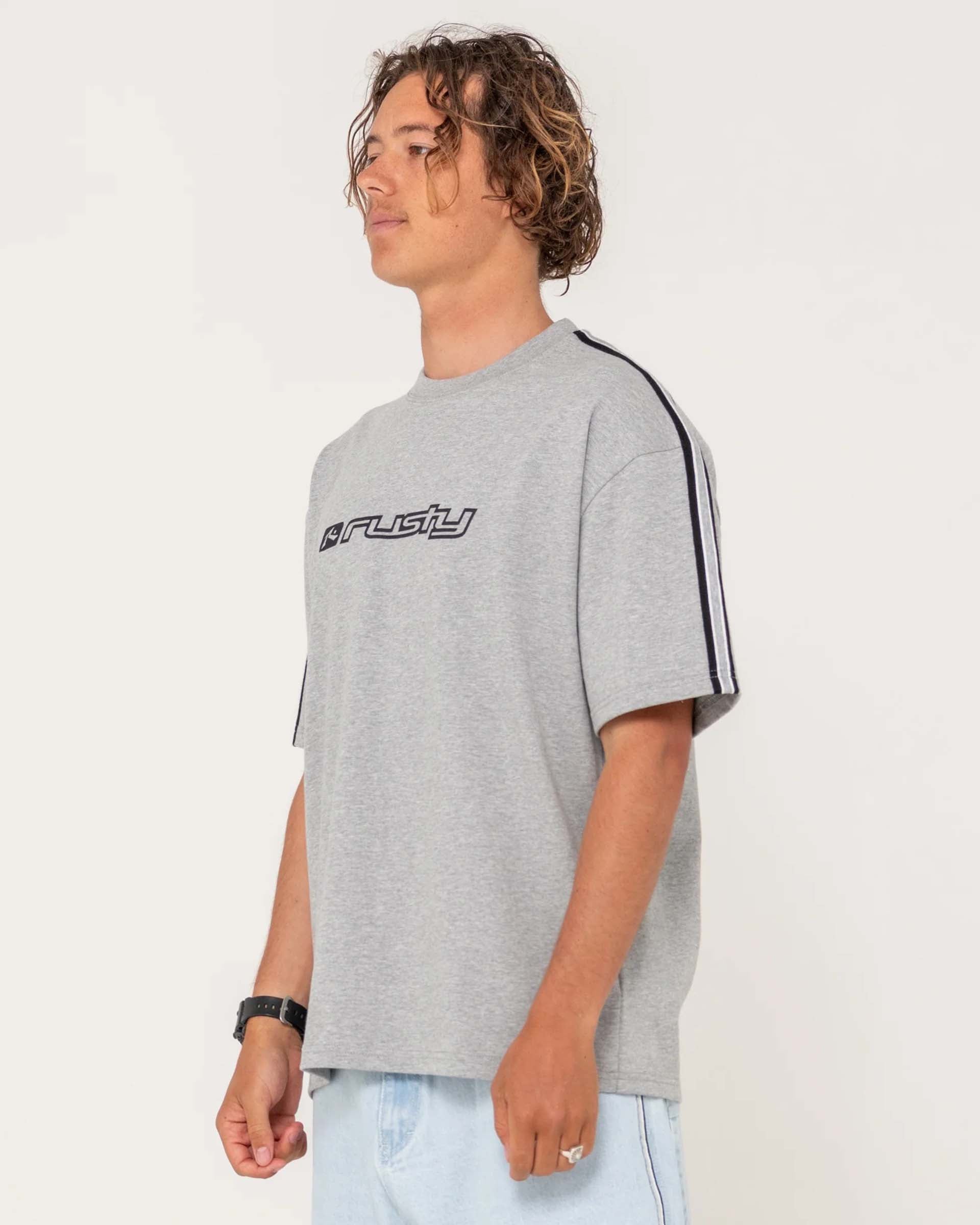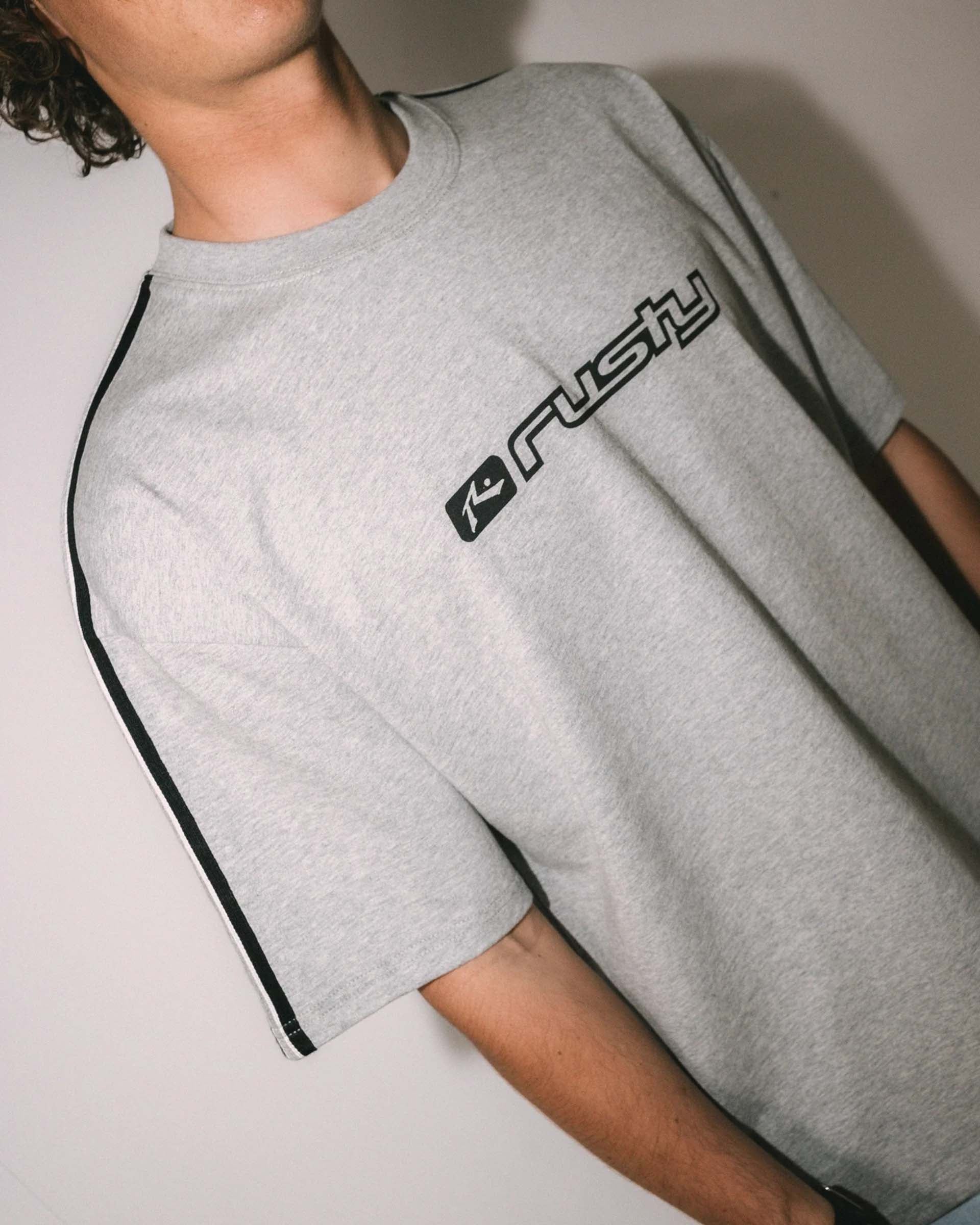 Oversized R2k Fit Tee With Knitted Overarm Tape And Rusty Chest Print. 100% Cotton Jersey