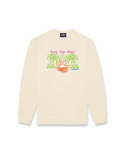 Stay cozy and stylish with the Girl's (8-16) Tropic Time Crewneck Sweater. Featuring a soft fleece lining, it keeps warmth snug on cooler days. The playful front print showcases seagulls, palm trees, and a sunrise over the water with the cheerful phrase "Sunny Days Ahead Jacks Surfboards," perfect for brightening any day with a touch of tropical fun.