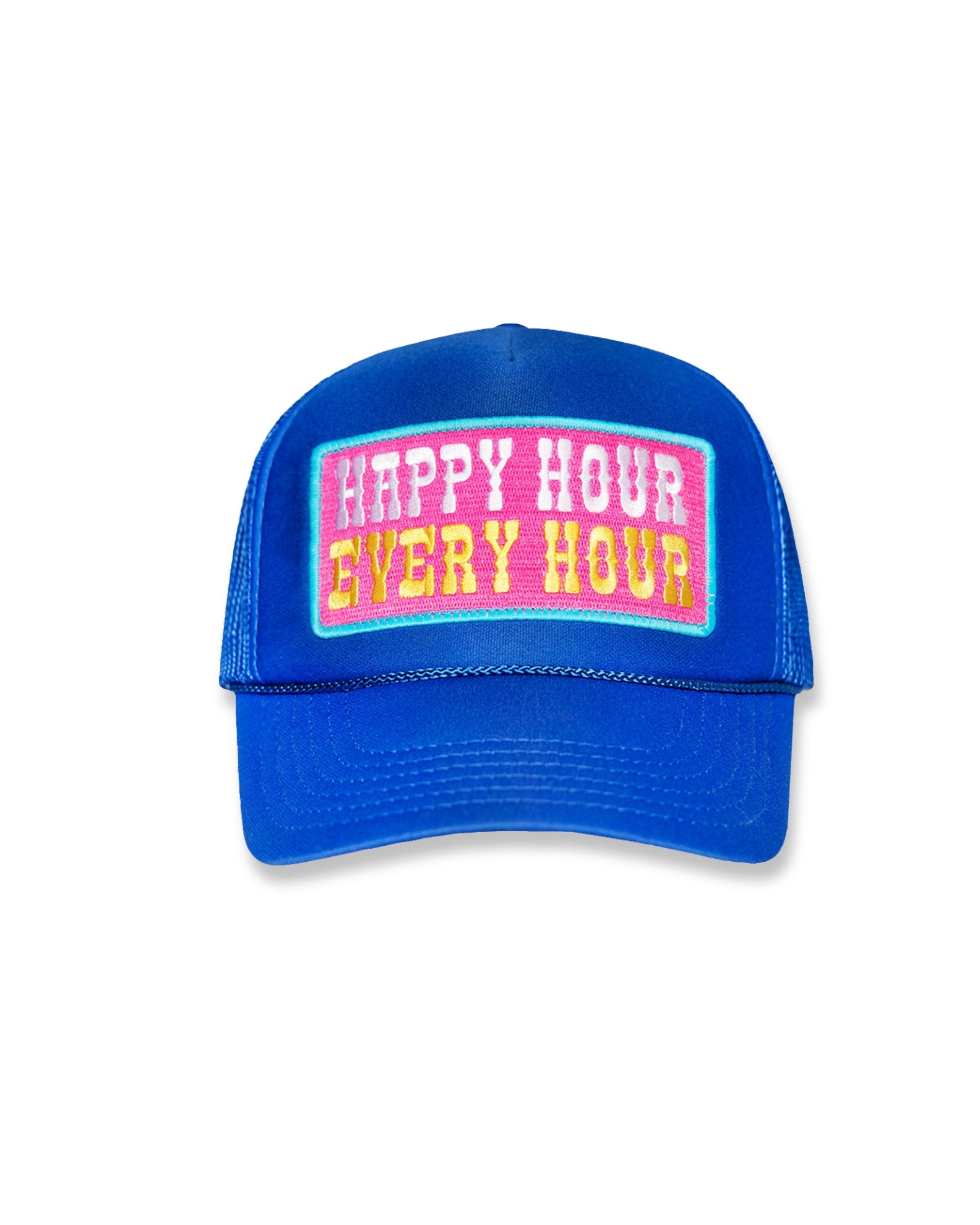 Happy Hour Foam Trucker Hat. The 5-panel, high crown design features a ventilated mesh back panel for ultimate breathability. Cheers to good times! Designed by Krista Horton for Jack's Surfboards.