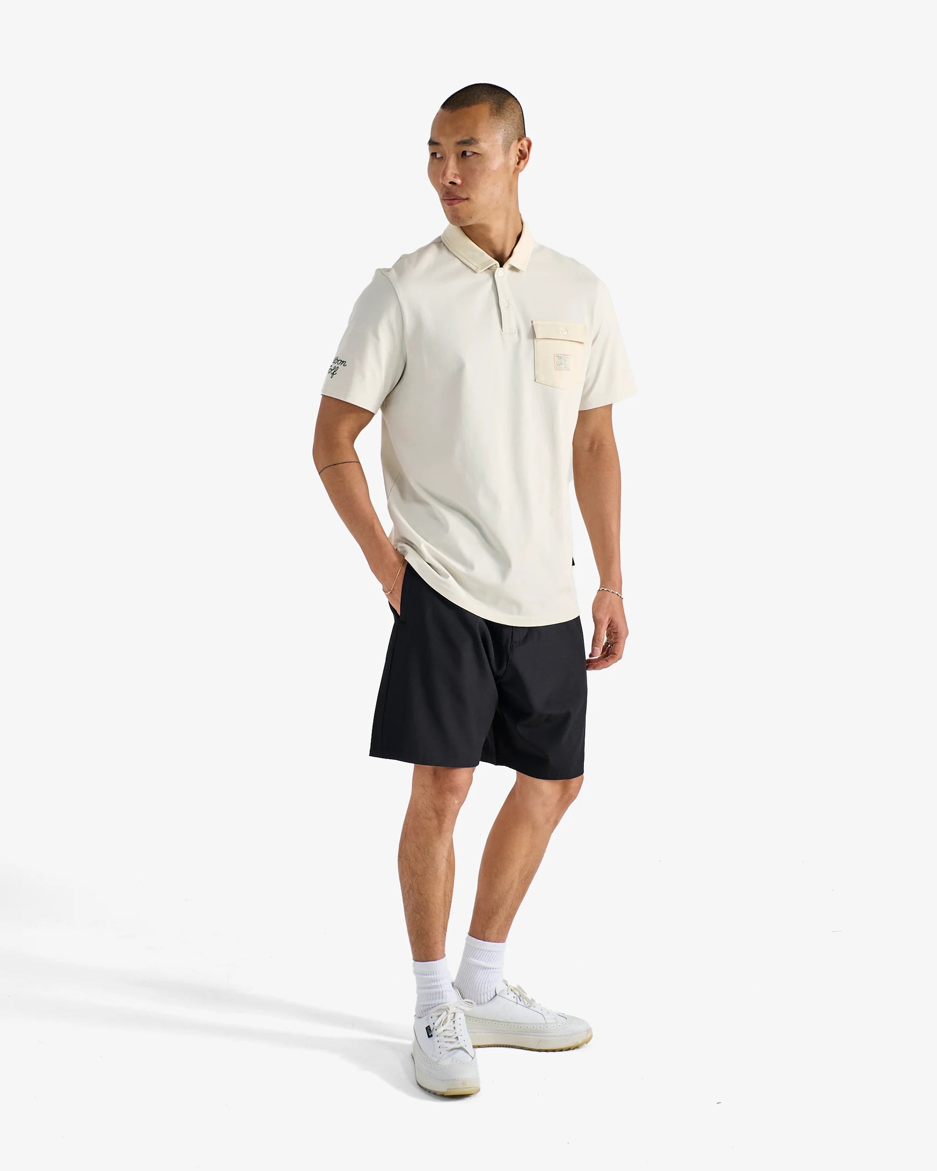 - Embroidered Malbon Golf Script logo on right sleeve