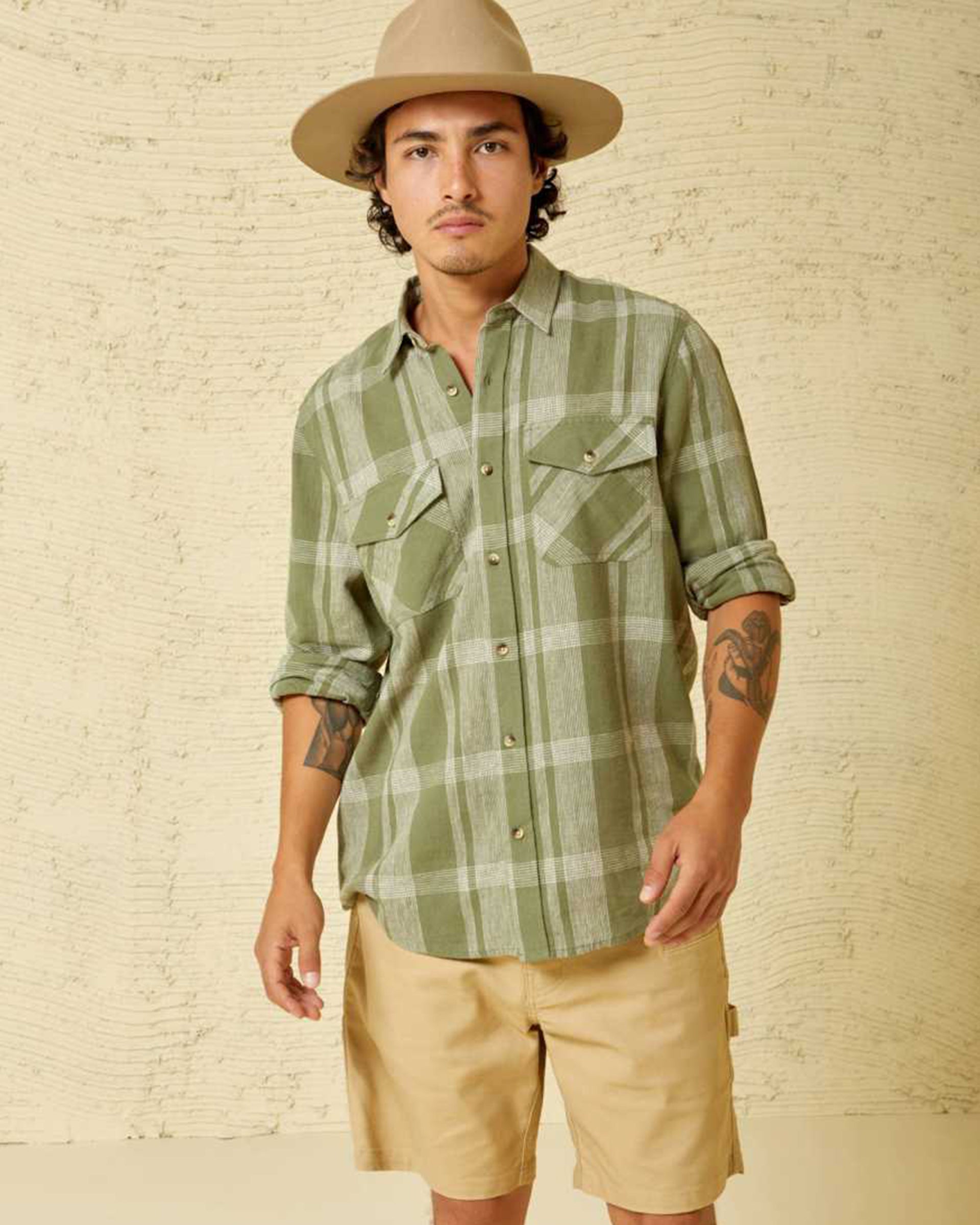 Memphis Linen Blend L/S Woven Shirt - Olive Surplus/Whitecap
