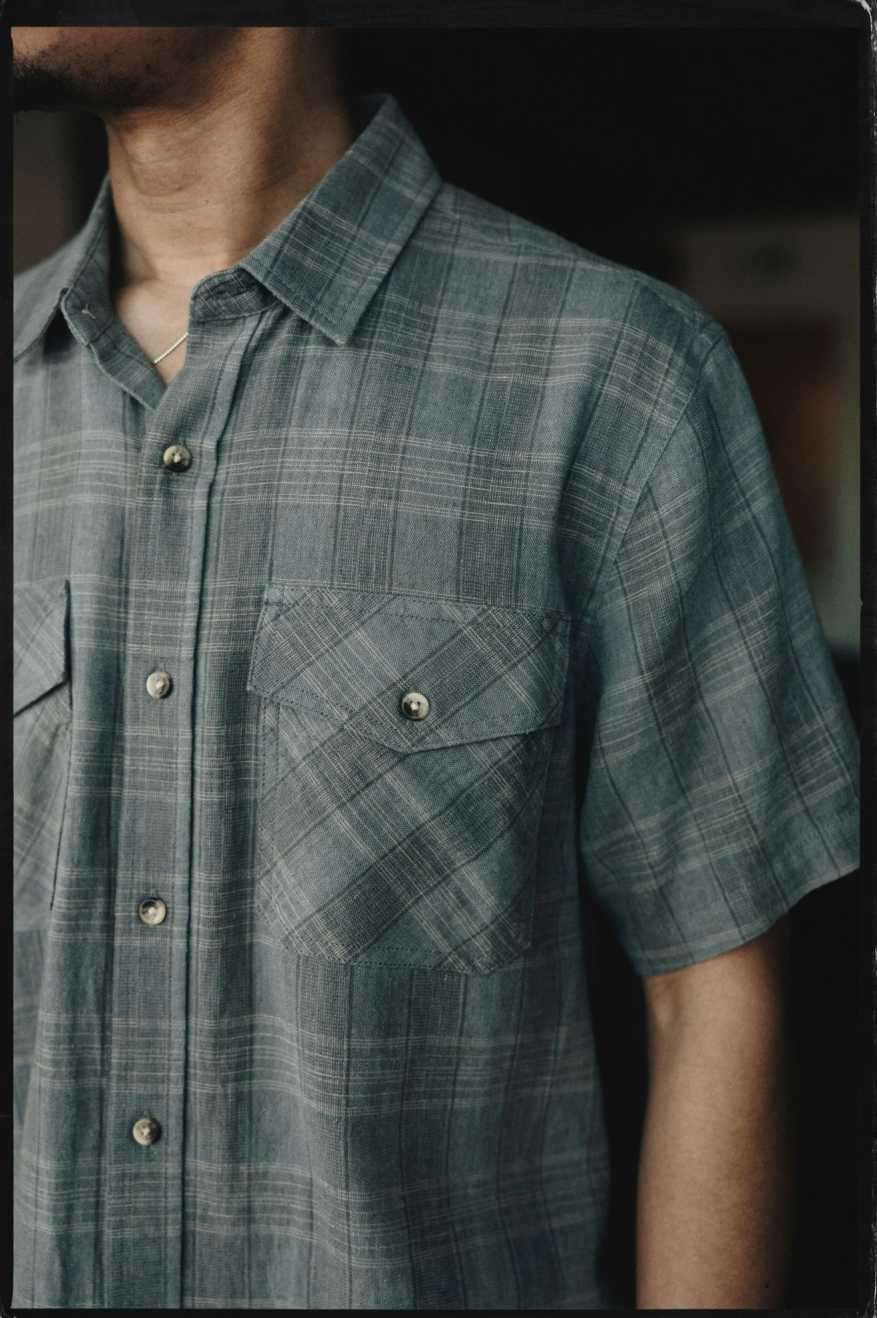 Memphis Linen Blend S/S Woven Shirt - Flint Stone Blue/Cinder Grey