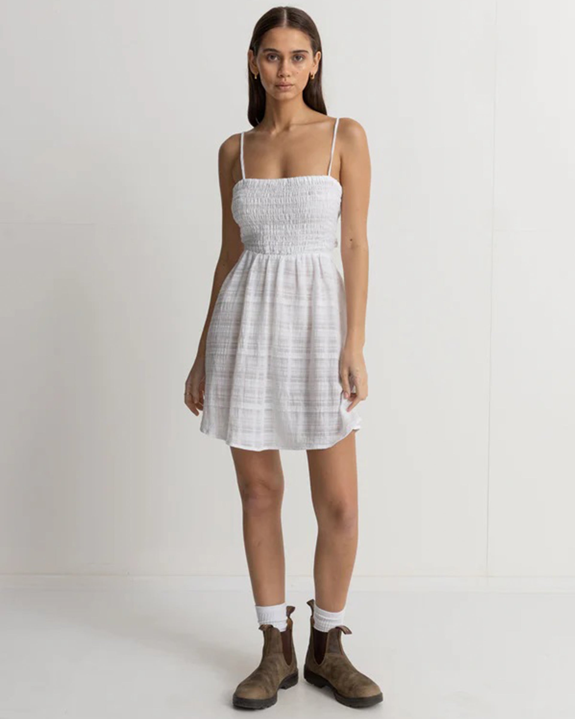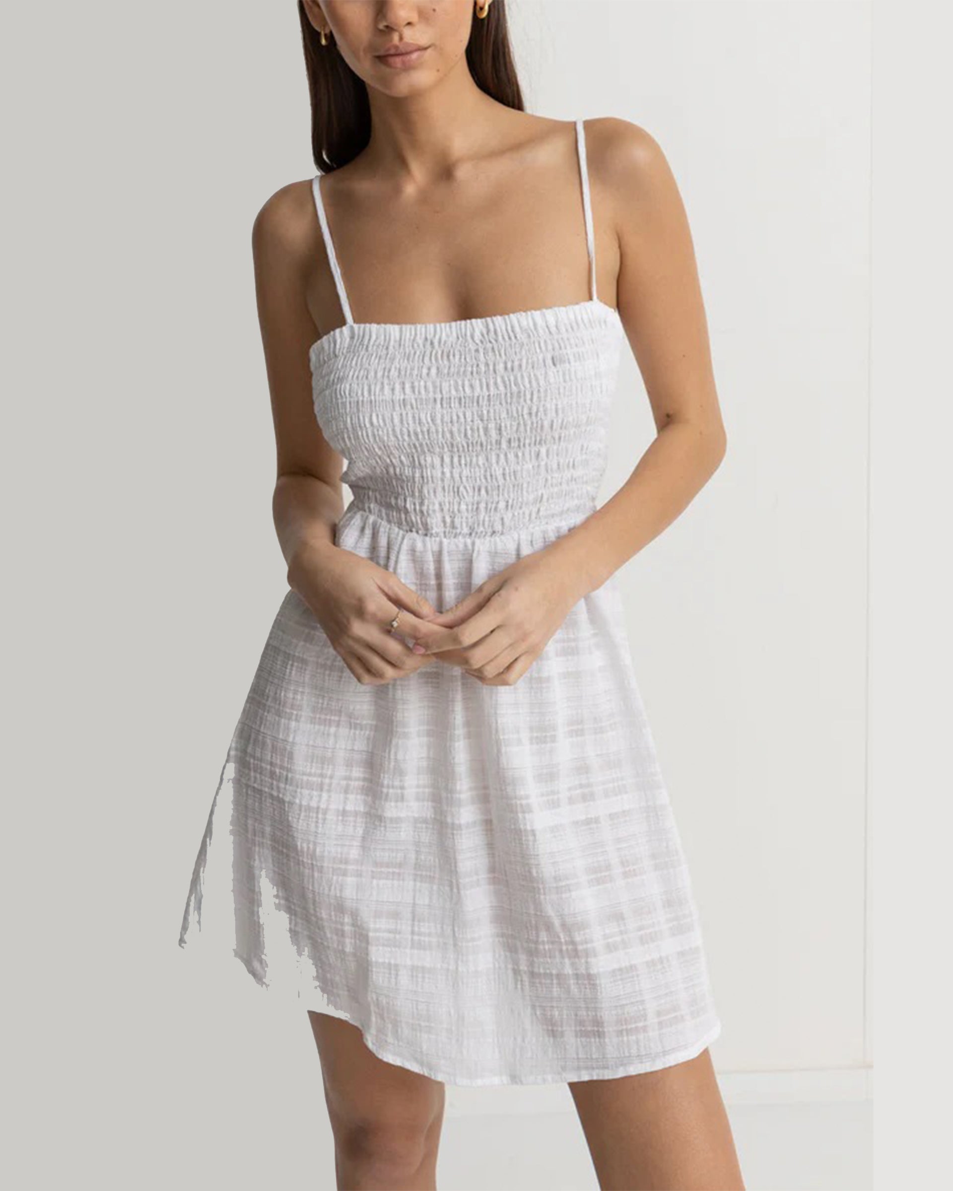 The Milly Smocked Mini Dress is perfect for warmer weather days and summer vacations. Featuring a smocked bodice that hugs your figure and creates a flattering silhouette.