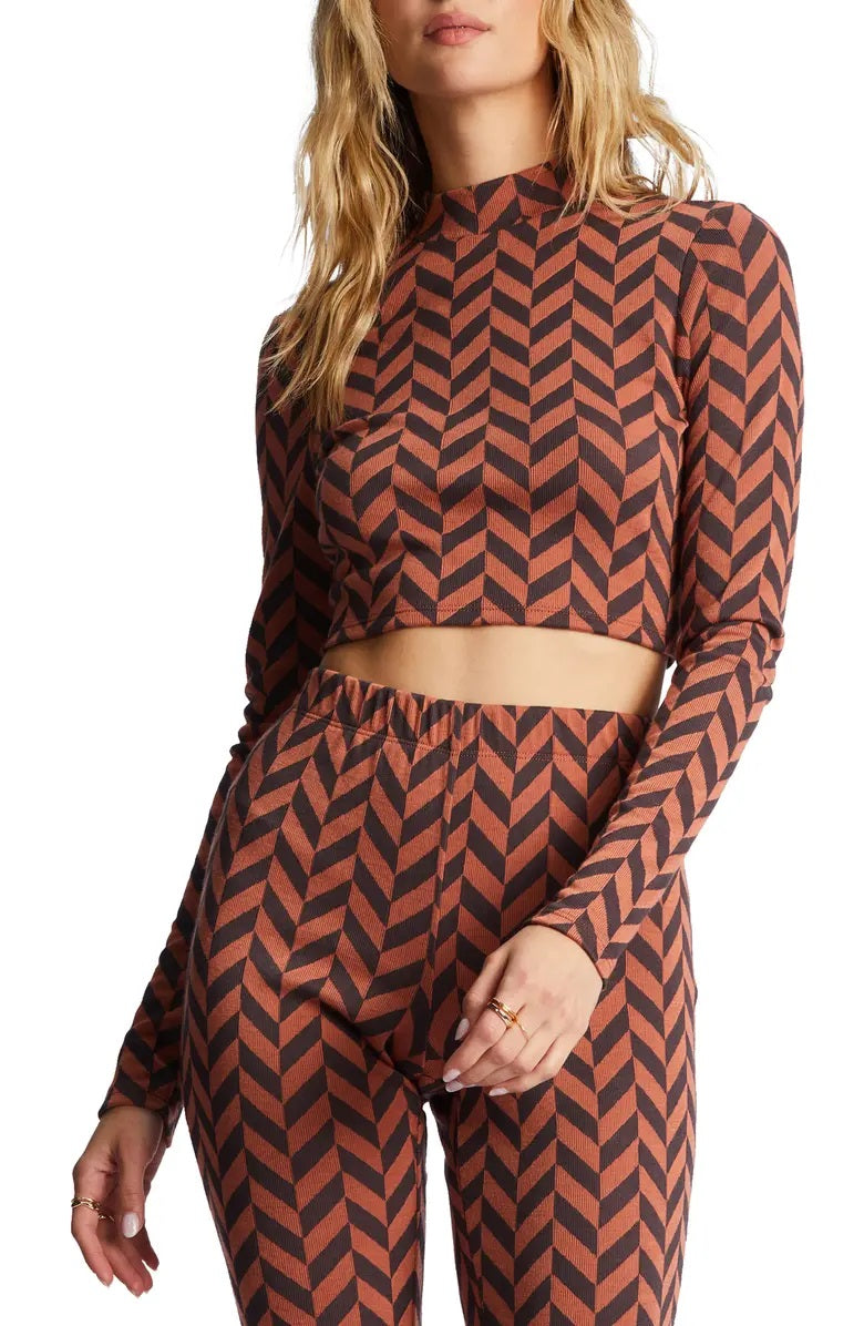 Billabong Women's New Heights Chevron Mock Neck Crop Top