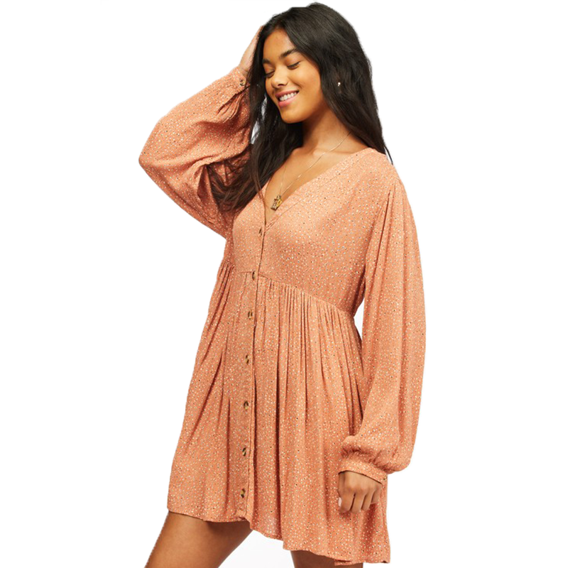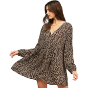 Good times are just around the corner in the On The Way Babydoll Dress. This women's babydoll dress offers a relaxed fit with long, blouson sleeves and a v-neckline with button details. The perfect flowy little mini for sunkissed days.