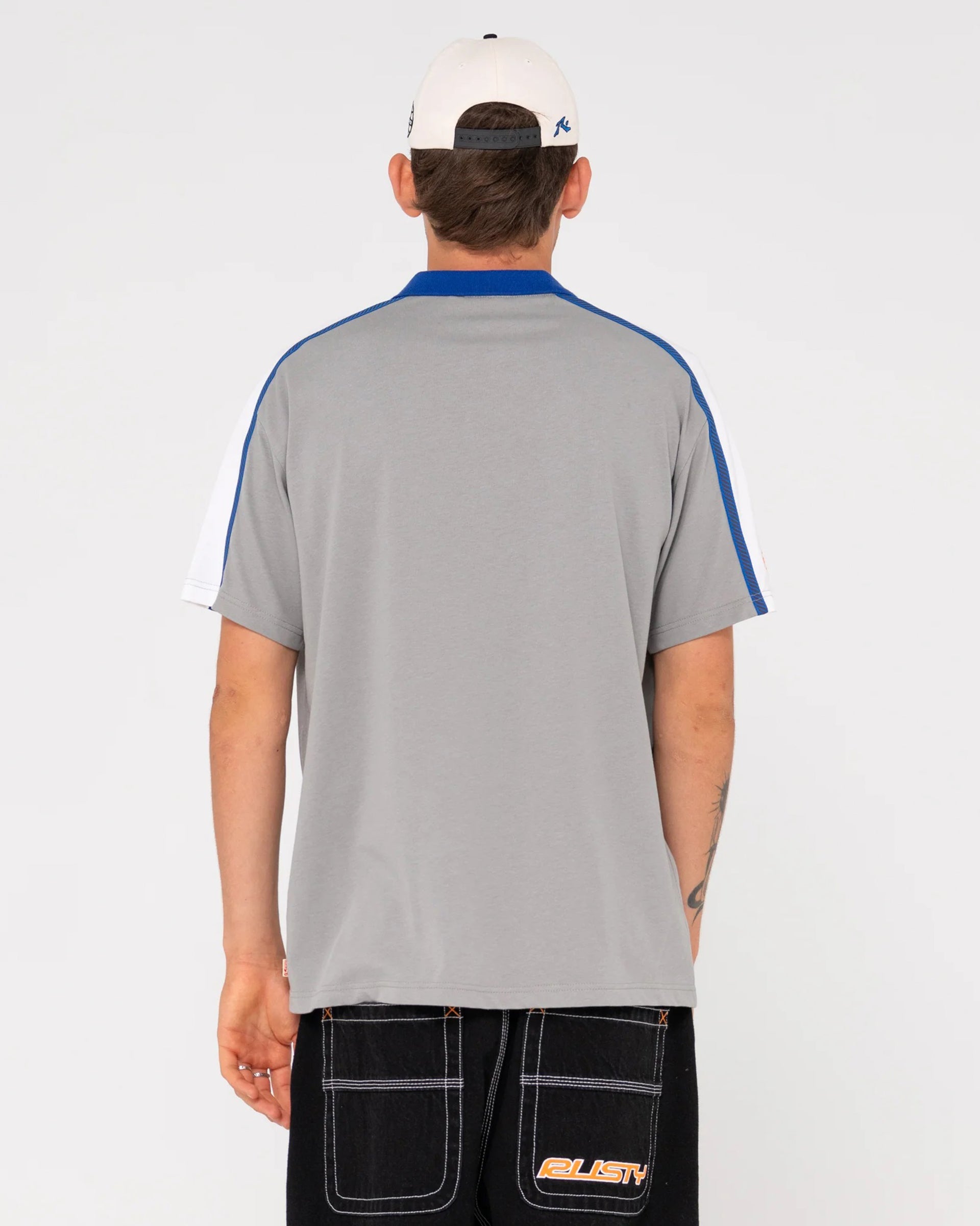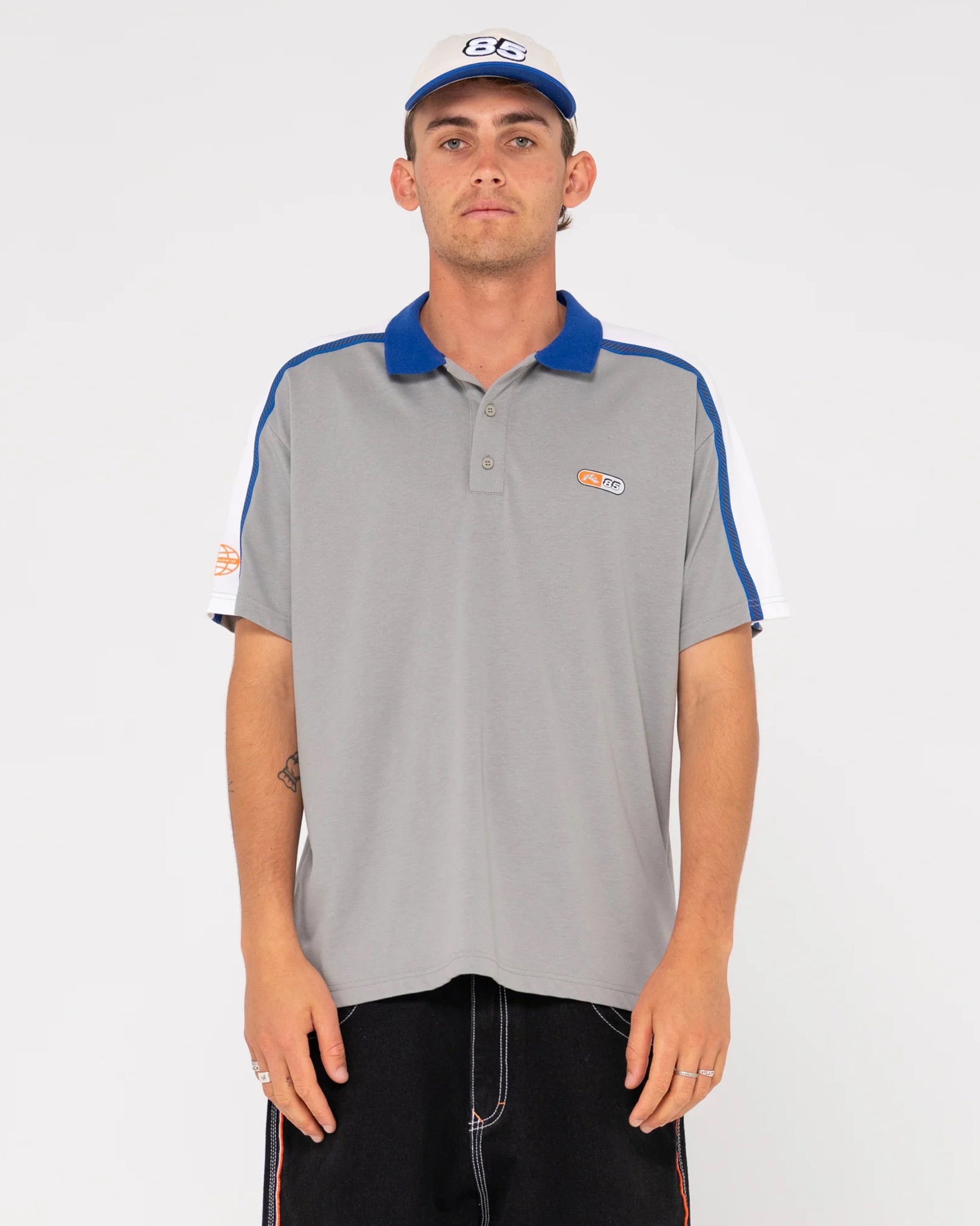 - Relaxed fit short sleeve polo with rusty sleeve embroidery and tape.