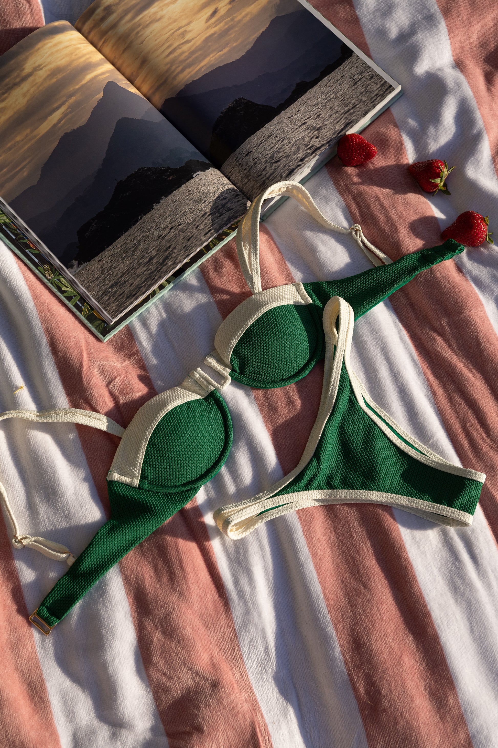 Make a splash with the Palm Spring Swim Top! This playful underwire bralette offers support and style, featuring an adjustable hook back closure to customize your fit. Perfect for sunny days and beach adventures, it’s your go-to top for fun in the sun.
