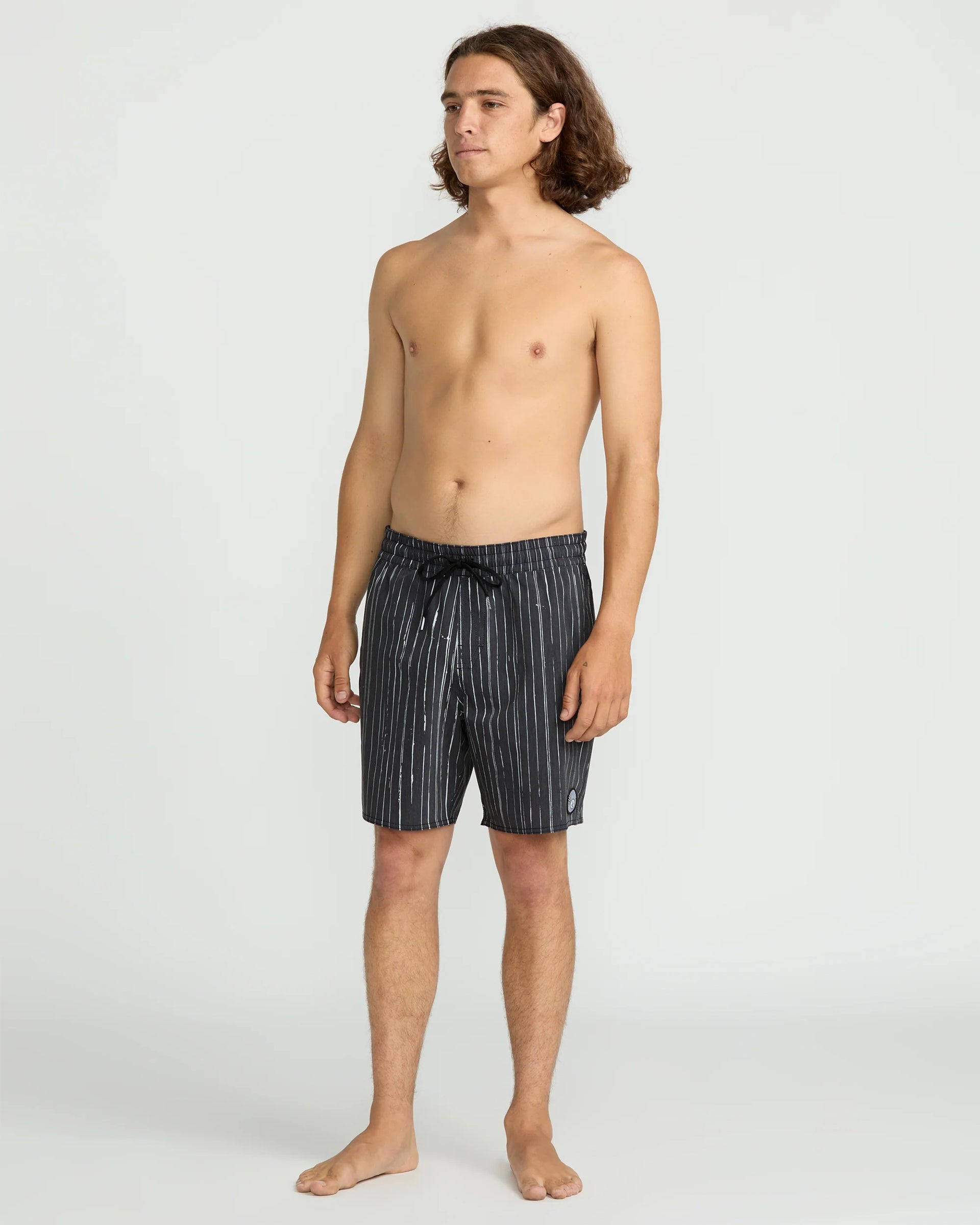 Lightweight polyester blend trunks with stretch blend move freely, inseam pockets hold essentials, signature woven labels showcase brand identity.
