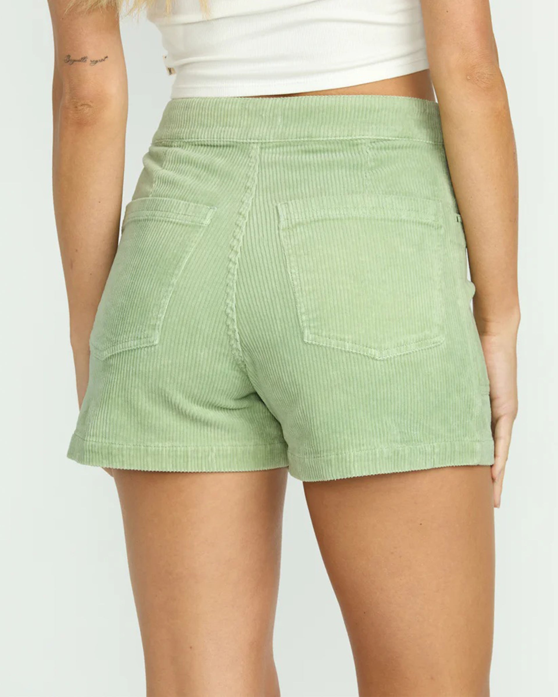 Our women's short delivers a vintage-inspired look in stretchy, corduroy-like fabric. Featuring a high-waisted fit, four pockets and a button / zip closure, this women's short pairs utility with on-trend style.