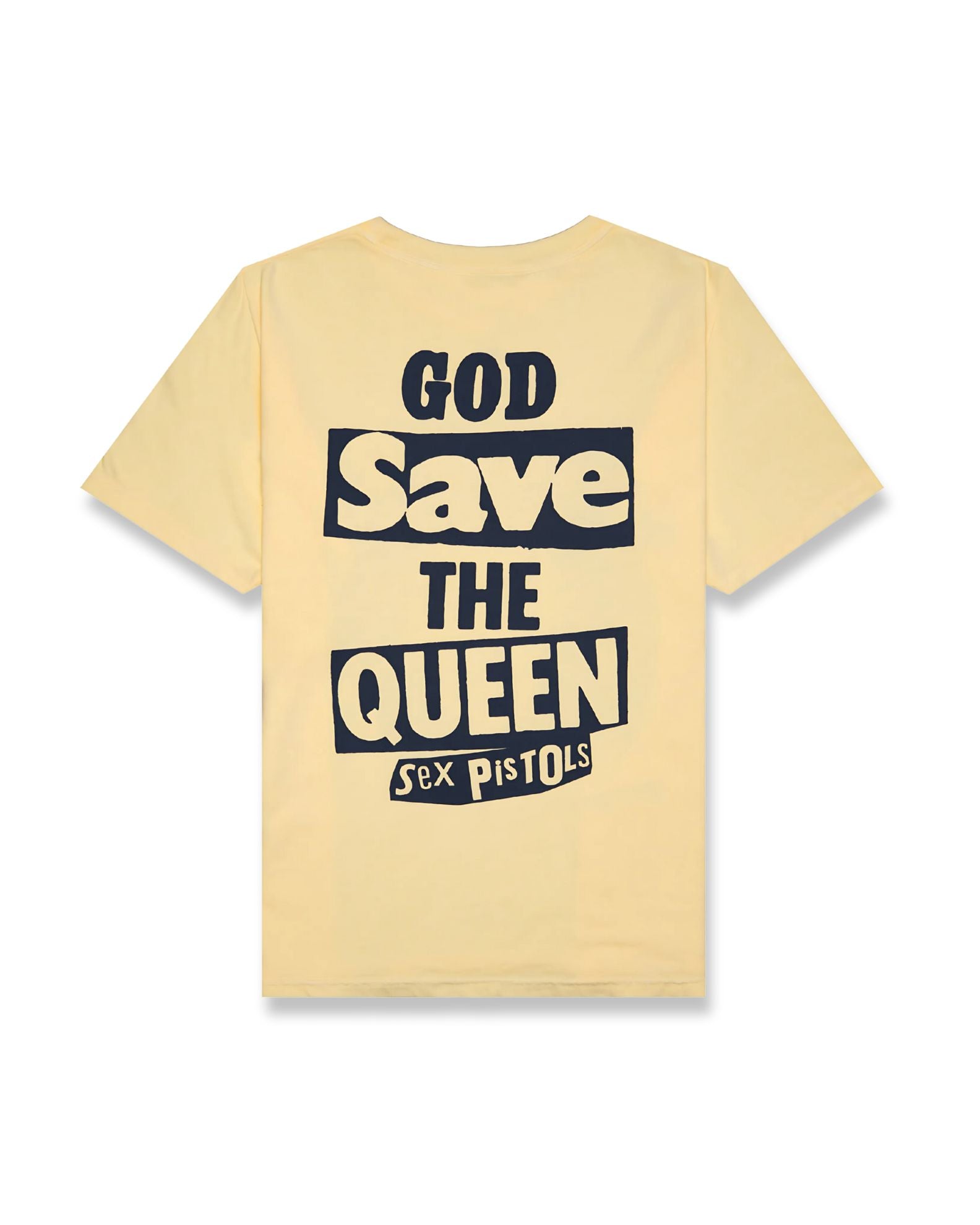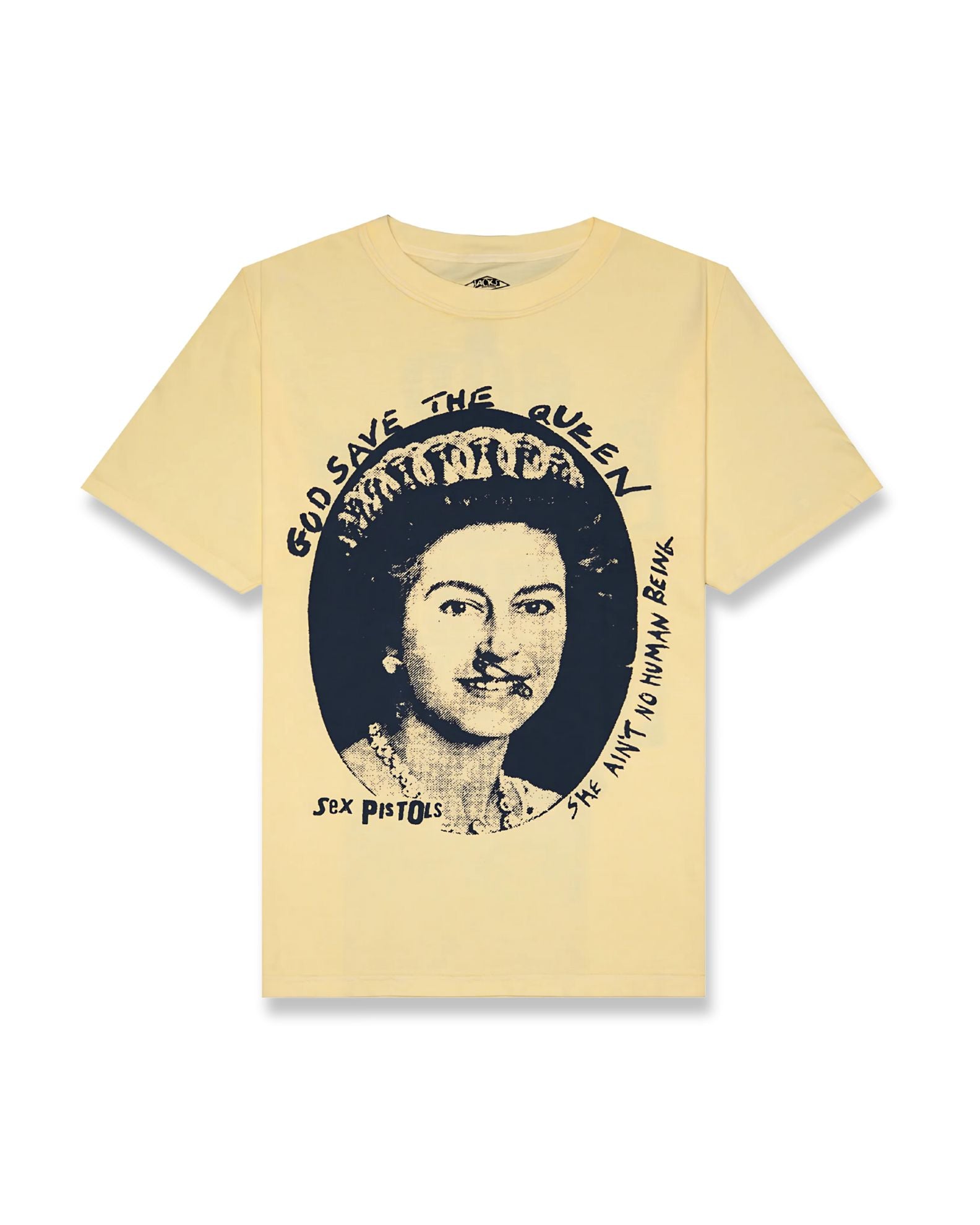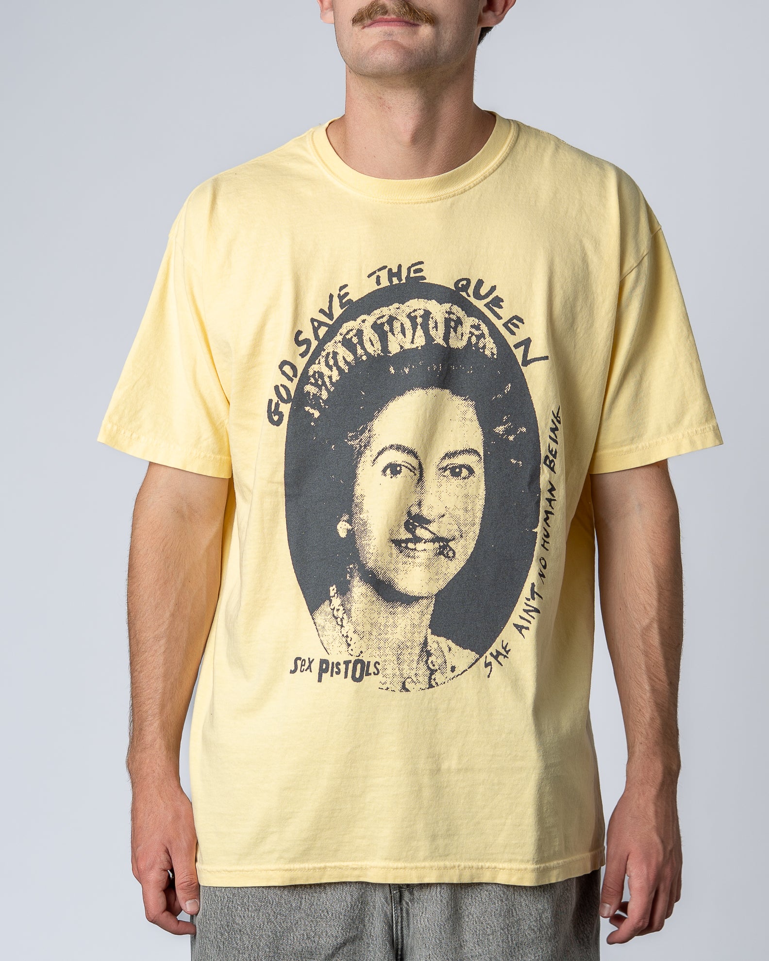 Feel like British punk royalty in this Sex Pistols God Save The Queen Tee! Inspired by the iconic song from the album Nevermind the Bollocks, this heavyweight t-shirt in butter yellow is sure to make a statement (fit for a queen) wherever you go.