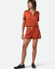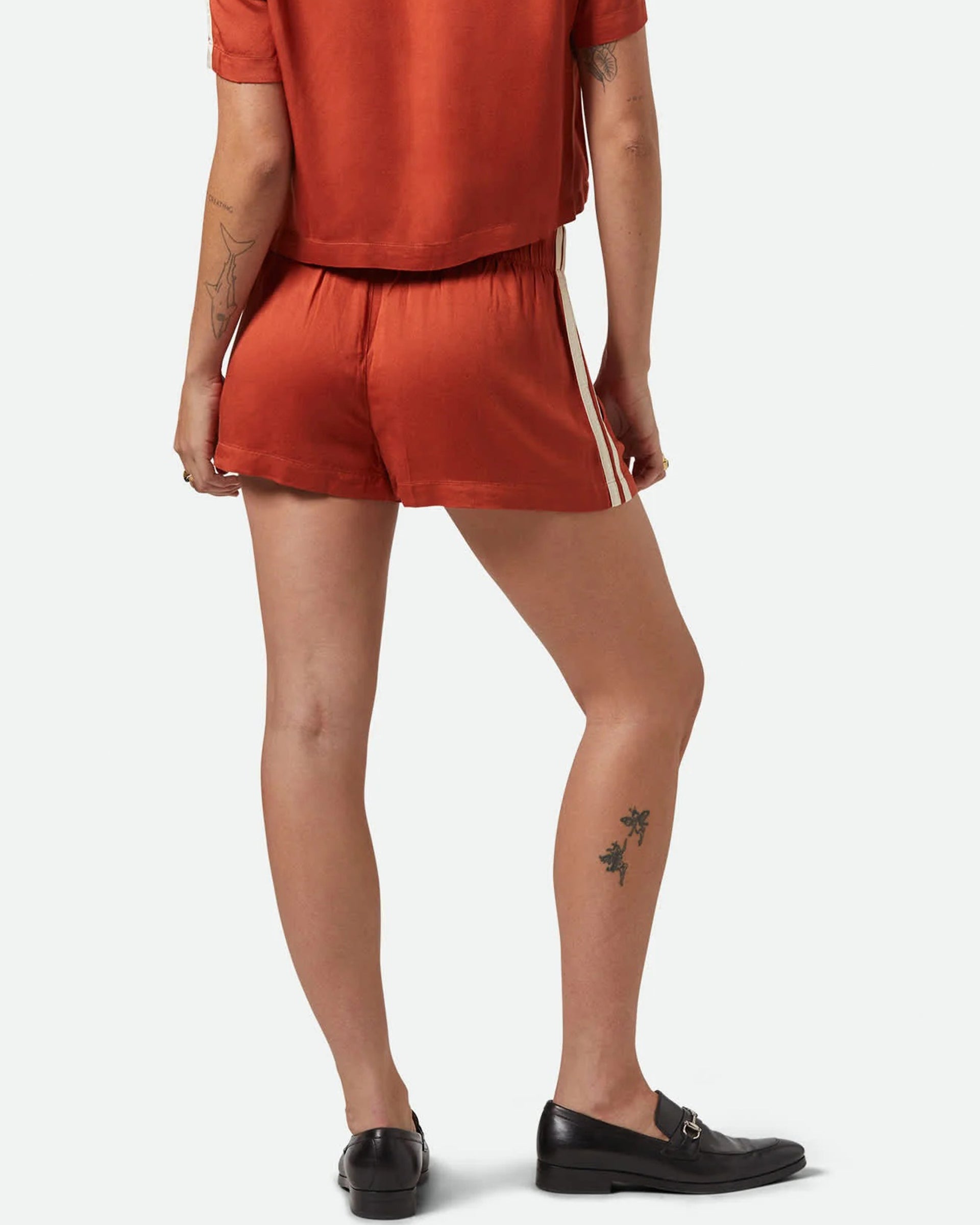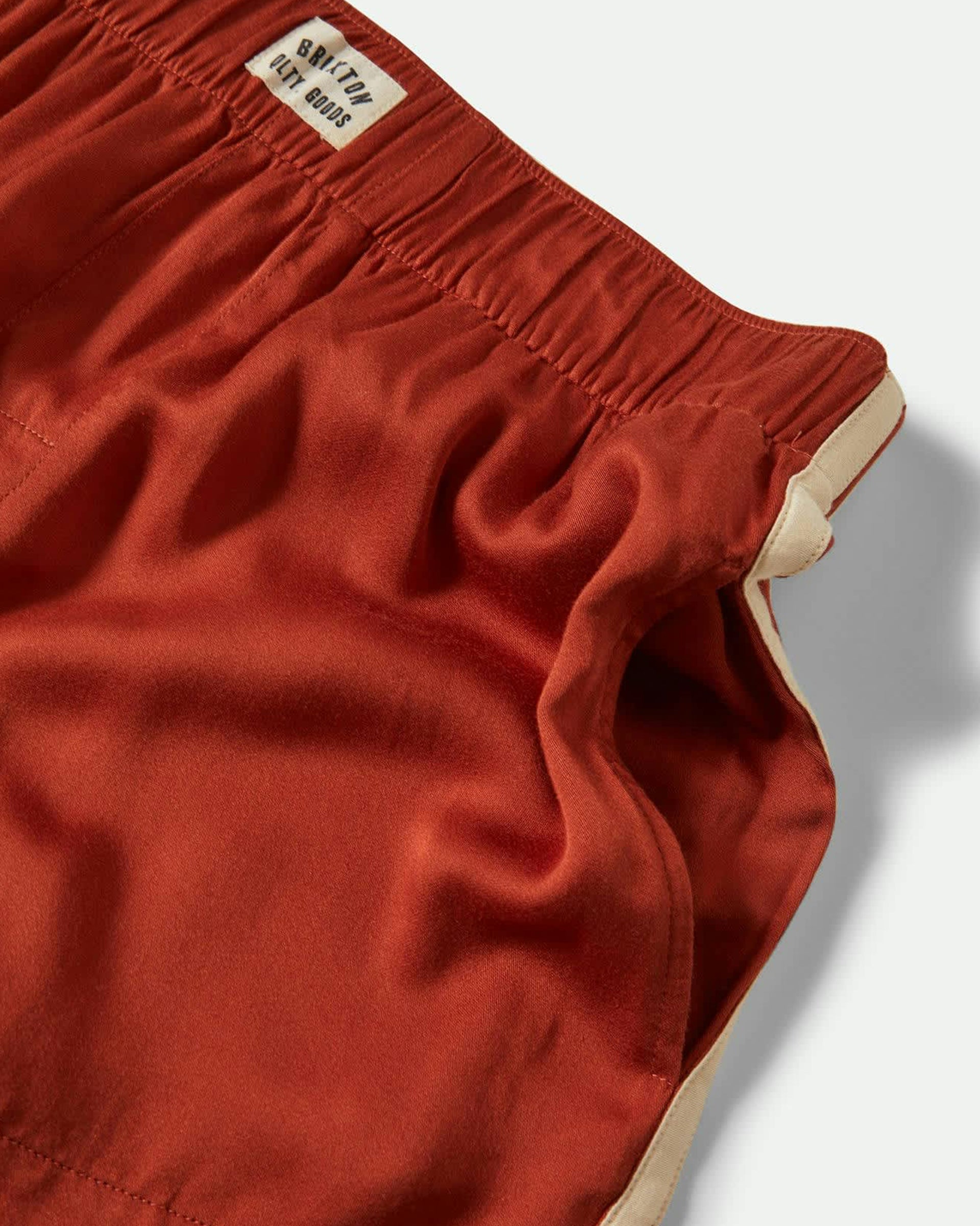 Smooth, lightweight, and effortlessly cool, the Silky Boxer Short blends comfort with sporty style. They're ridiculously soft against your skin with a relaxed fit that's ideal for kicking back. An elastic waistband ensures all-day comfort, while contrasting athletic stripes down the sides give these boxers a sporty, street-style edge. Wear them as chic loungewear after your morning workout or as versatile sleepwear that'll keep you cool through the night. Finished with Brixton's signature Woodburn woven label at the center front, these shorts combine thoughtful detailing with everyday versatility.