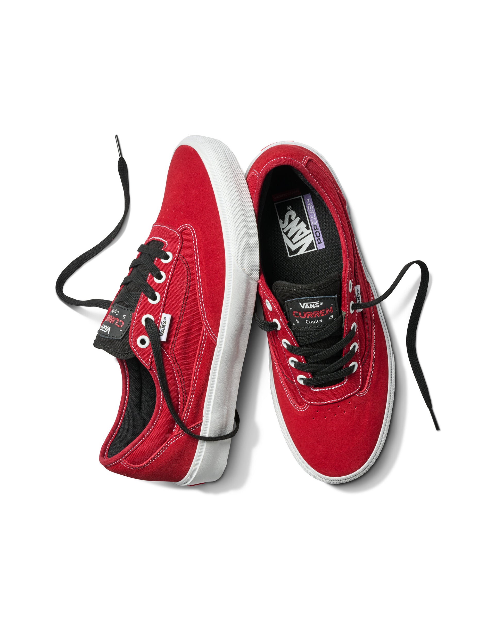 In his never-ending search for Vulcanized Perfection, Curren Caples brings his first signature Skate shoe to the mix. With a new custom outsole pattern, the bottom is optimized for grip and board feel with SICKSTICK™ rubber. The leather upper is reinforced with DURACAP™ underlays for longevity, and a POPCUSH™ insole offers impact protection for hard landings. The padded collar and lace closure ensure a perfect--and comfortable--fit, run after run.