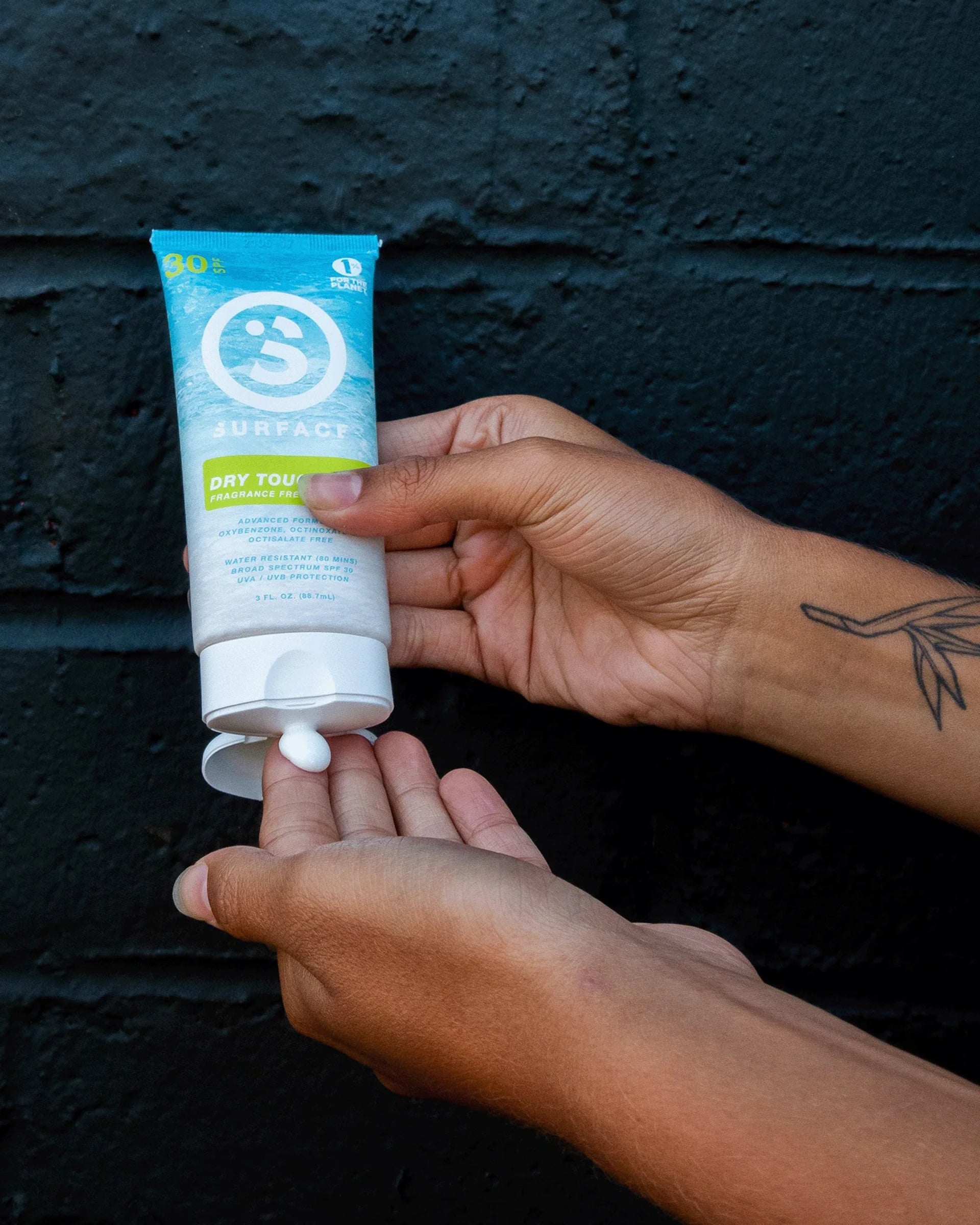 NEW IMPROVED FORMULA and HIGHER SPF! Surface is excited to introduce a healthier formula to our popular Dry Touch line. Now not only Oxybenzone and Octinoxate free, but also OCTISALATE FREE! Now made in a higher SPF without comprimizing the most comfortable sunscreen in the world. Designed to be Ultra lightweight and clean feeling; the Surface Dry Touch SPF50 Lotion is the ideal Broad spectrum UVA/UVB sunscreen for those who live, work and play in the sun.