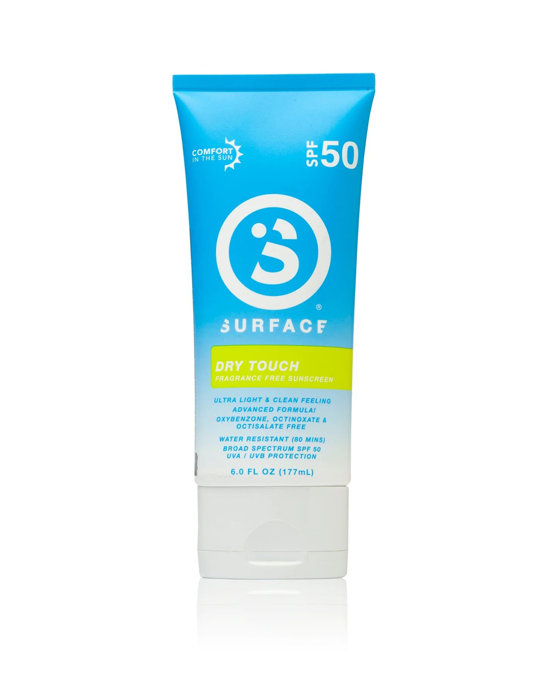 NEW IMPROVED FORMULA and HIGHER SPF! Surface is excited to introduce a healthier formula to our popular Dry Touch line. Now not only Oxybenzone and Octinoxate free, but also OCTISALATE FREE! Now made in a higher SPF without comprimizing the most comfortable sunscreen in the world. Designed to be Ultra lightweight and clean feeling; the Surface Dry Touch SPF50 Lotion is the ideal Broad spectrum UVA/UVB sunscreen for those who live, work and play in the sun.
