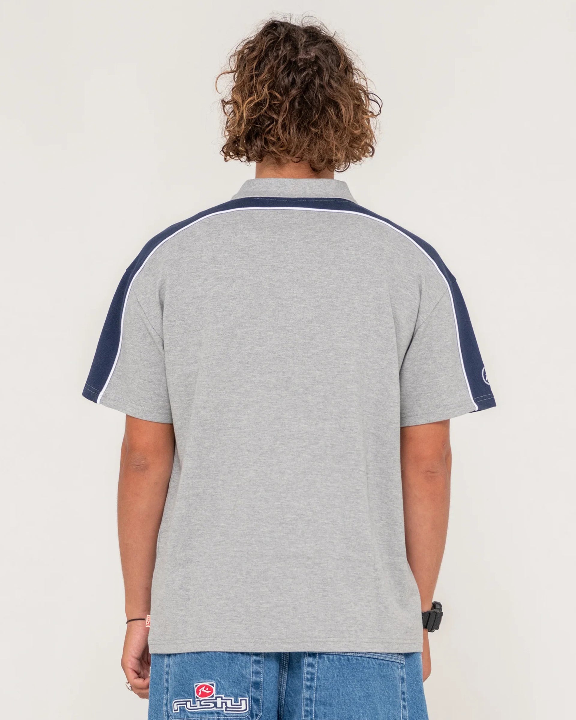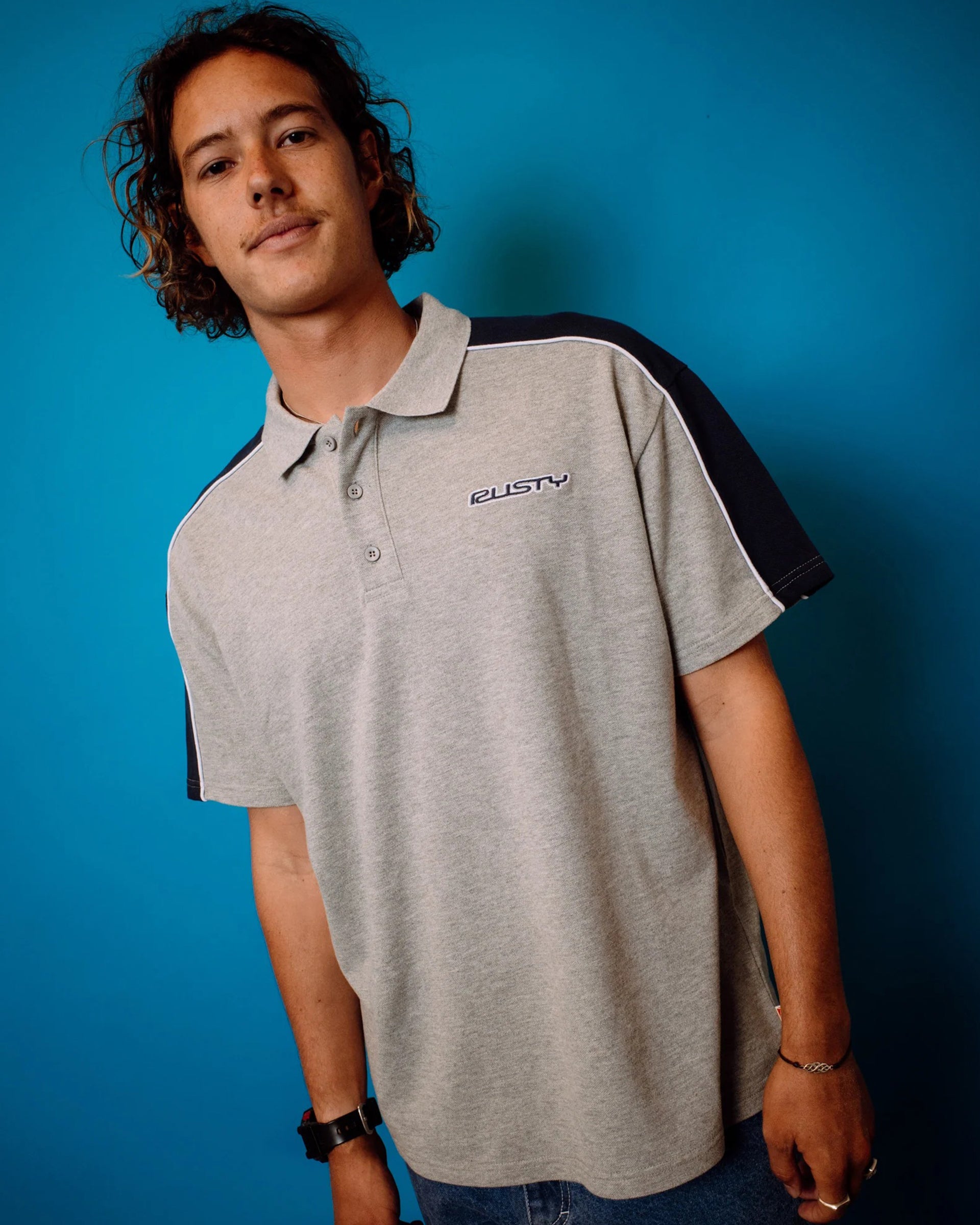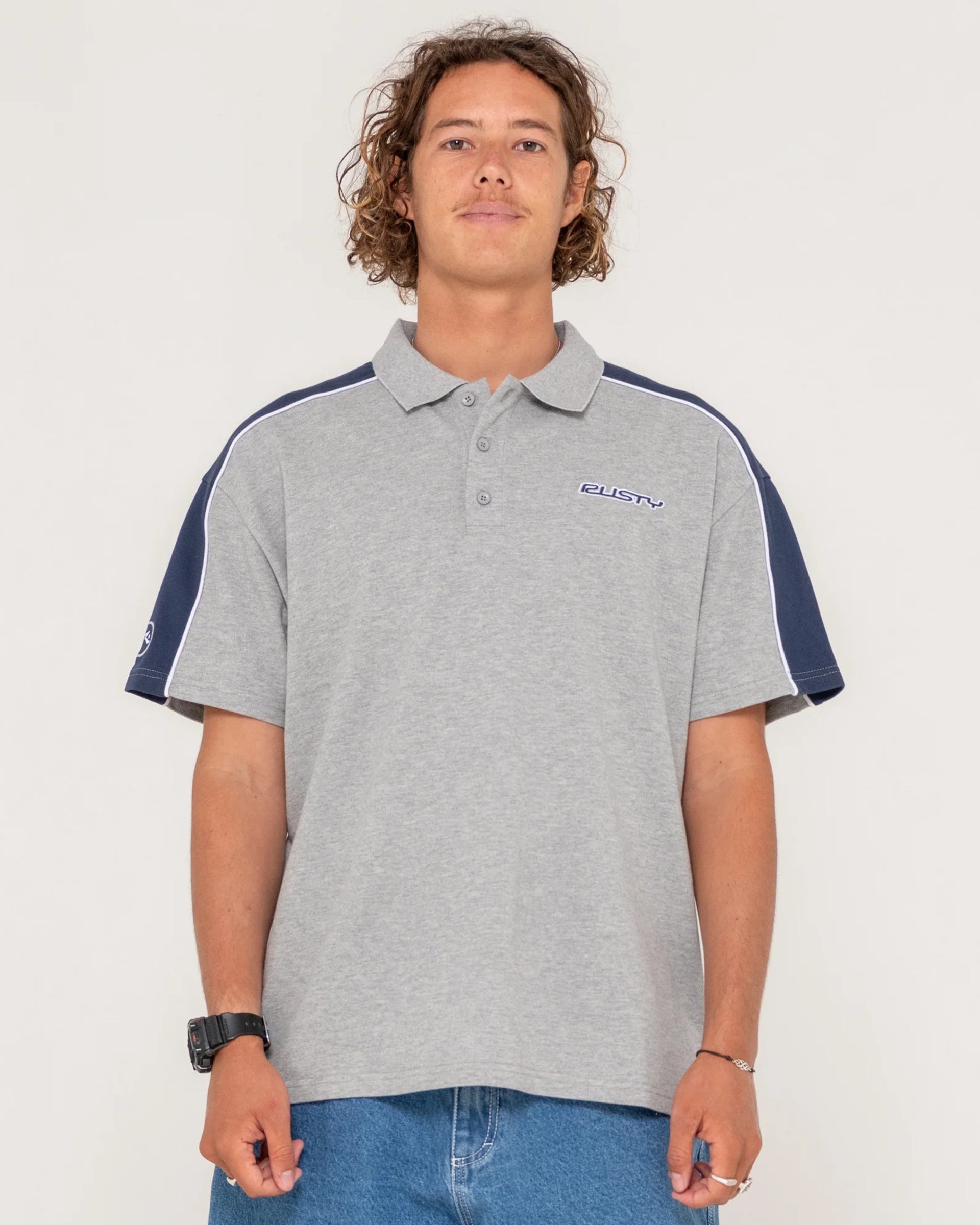 Regular OG fit short sleeve polo with Rusty embroidery and piping.