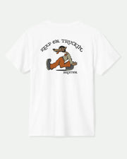 Upgrade your everyday lineup with the Stride Short Sleeve Tailored T-shirt. Made from premium ring-spun cotton, it resists shrinking to maintain a tailored yet flexible fit wear after wear. The "keep on truckin'" graphic delivers a cool, vintage vibe whether you're dressing it up with chinos or keeping things casual.