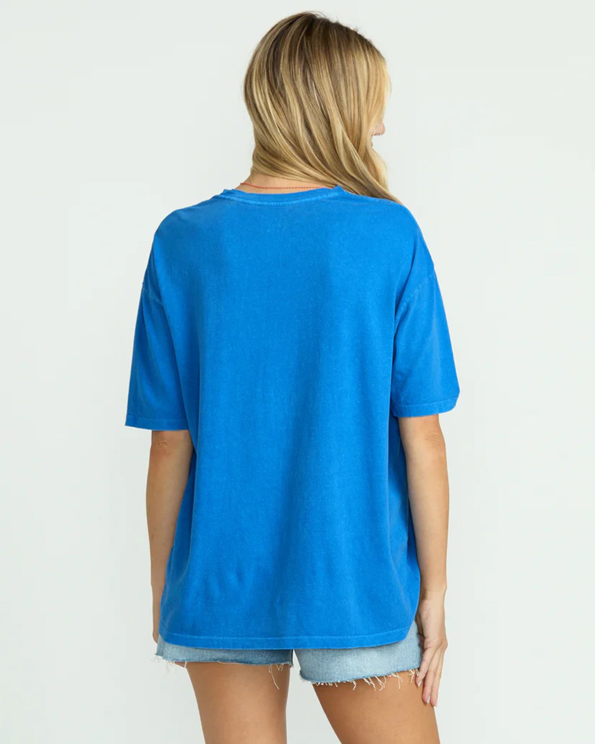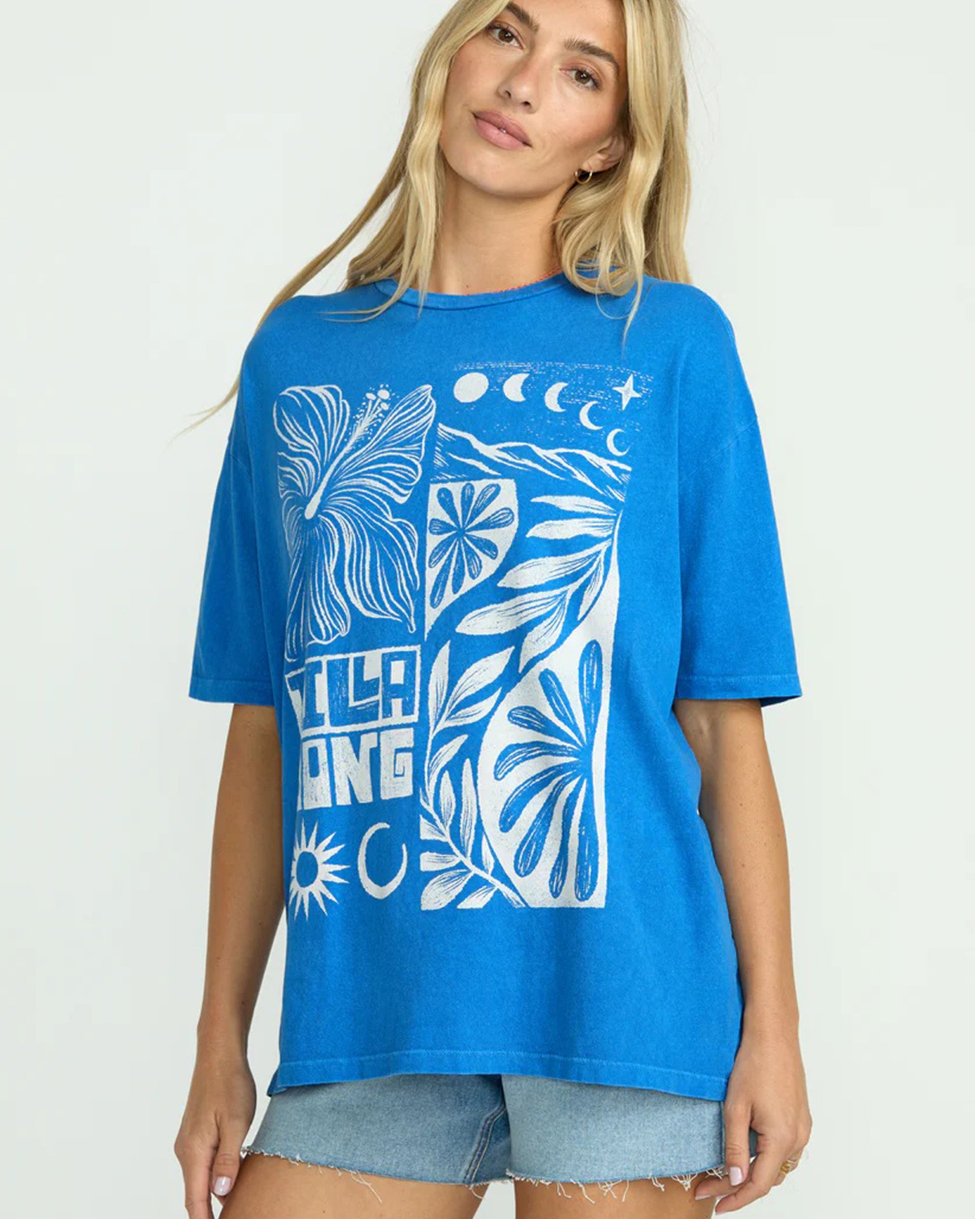 Our airy 100% cotton tee channels summer nights with a pigment dyed, loose knit jersey and oversized 'true boy' fit. Breathable, soft and sporting a graphic screen print.