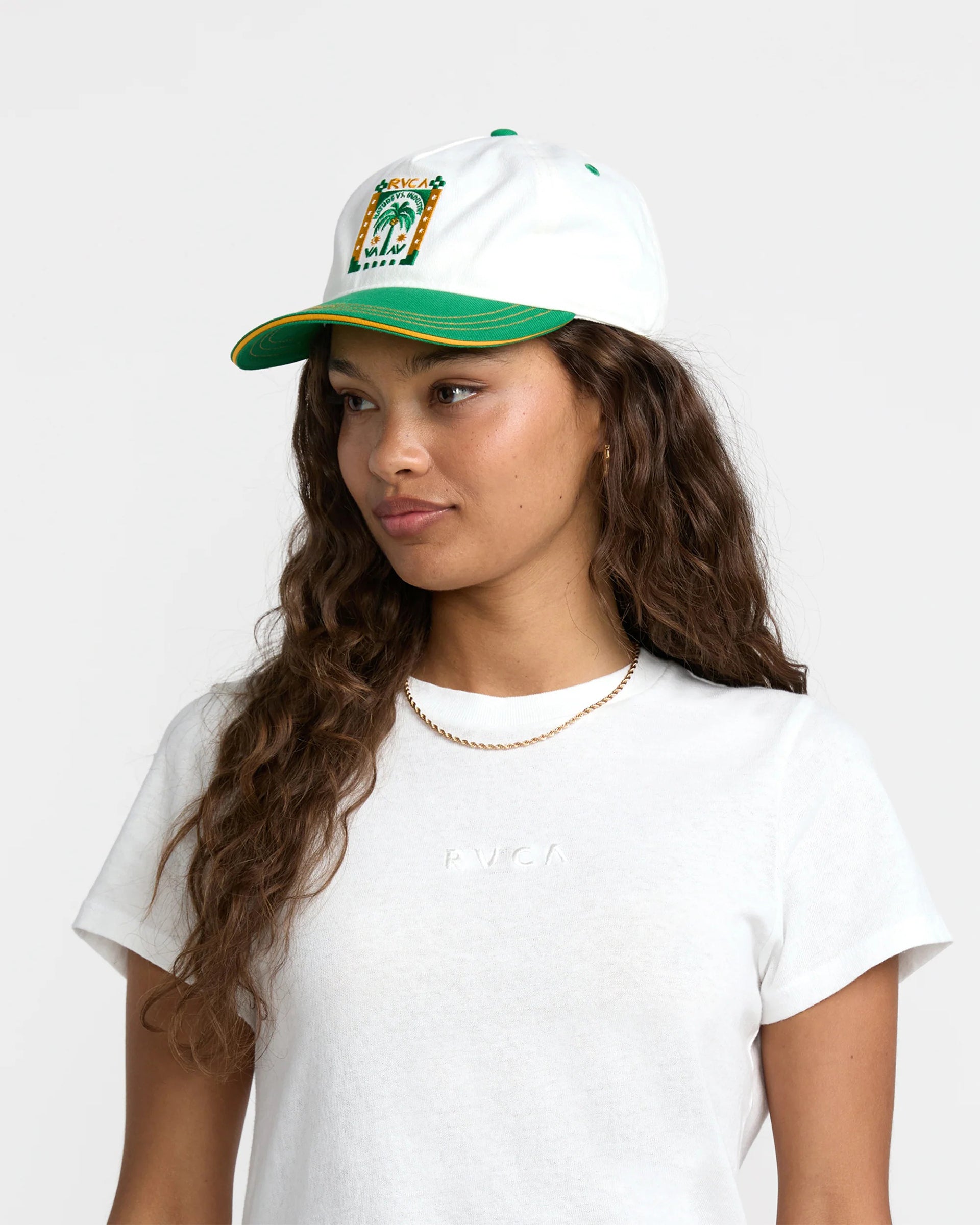 The RVCA Summer Palms Trucker Hat brings the island vibes with a fresh, playful design. Made from 100% cotton twill, this cap features a curved brim and a custom direct embroidery palm graphic that captures RVCA’s Nature vs. Industry ethos. Finished with an adjustable snapback closure, it’s the perfect piece to top off your look—whether you’re beach-bound or city-strolling. Sun-Drenched Style with a Laid-Back Feel