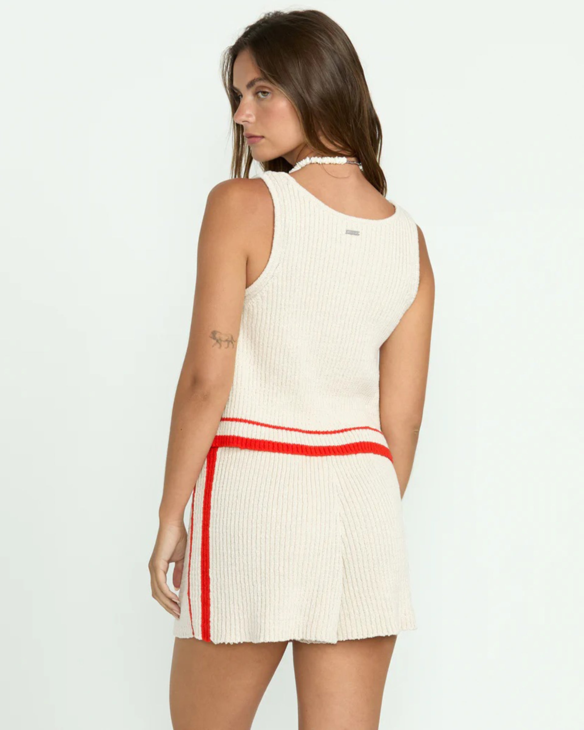 Our Billabong Womens' easygoing 100% cotton knit shorts with contrast stripes, relaxed fit, and drawstring waist keep you breezy all summer.