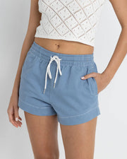 The Sundown Everyday Shorts embody the essence of laid-back coastal living. Made from 100% cotton soft denim, they feature a high waistband, elasticated fit, and side entry pockets. With a channeled drawcord and scoop side hem detail, these shorts are perfect for sunlit days and casual outings, offering a relaxed and stylish fit for whatever you're seeking.