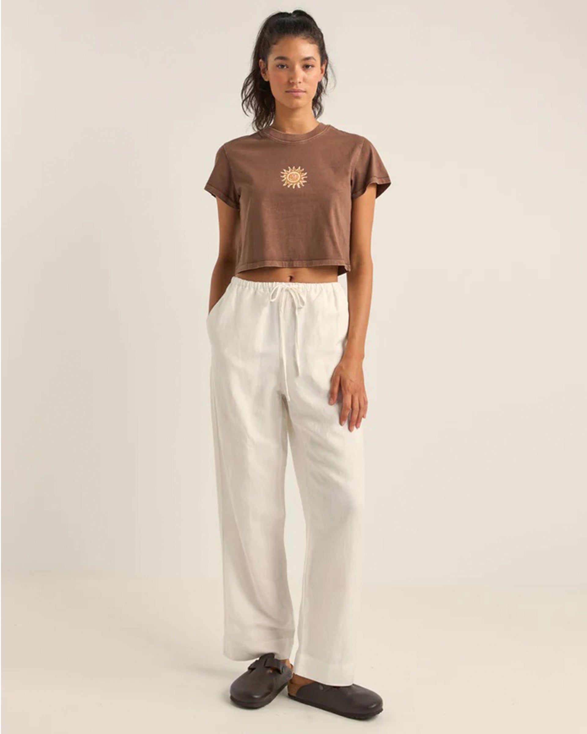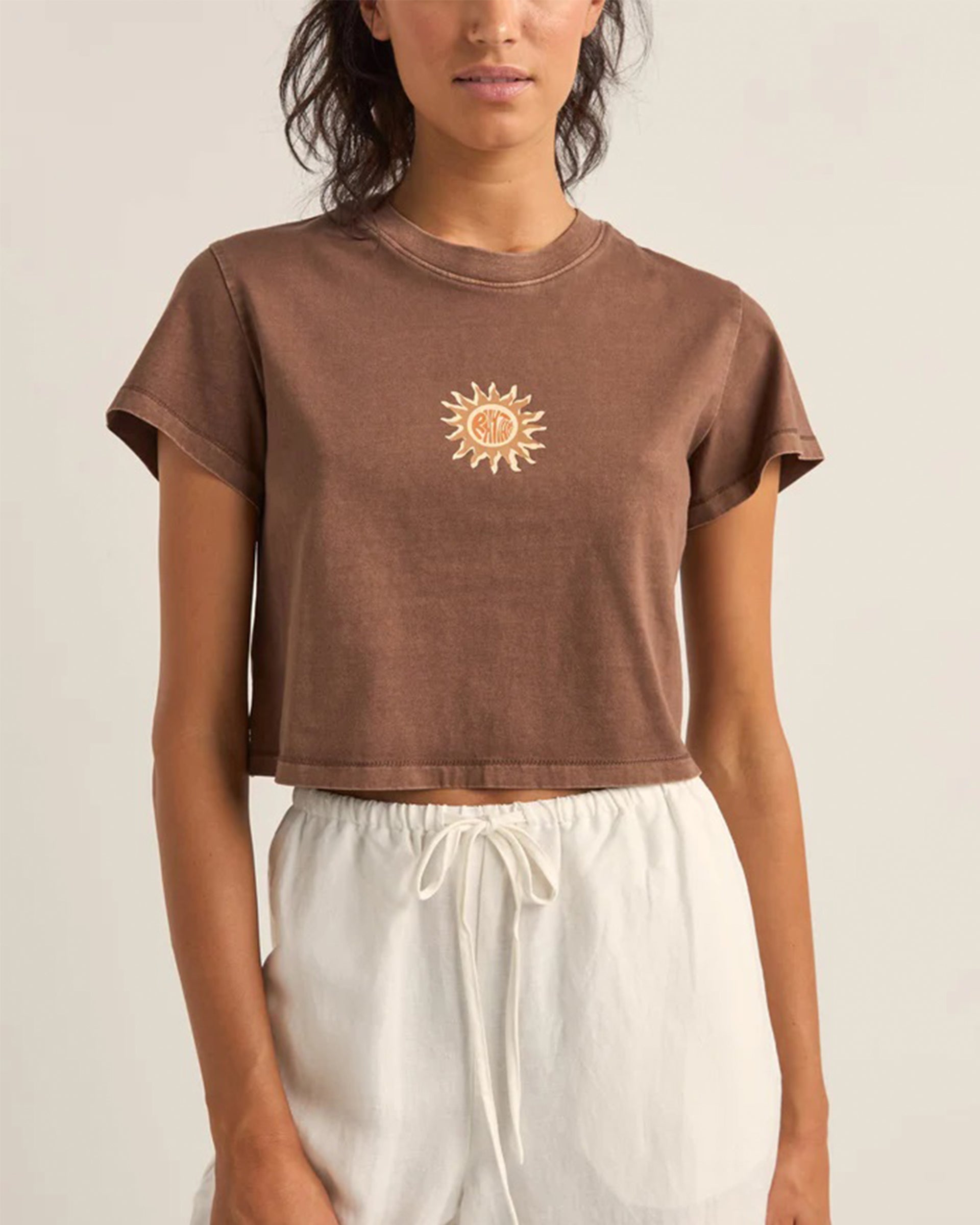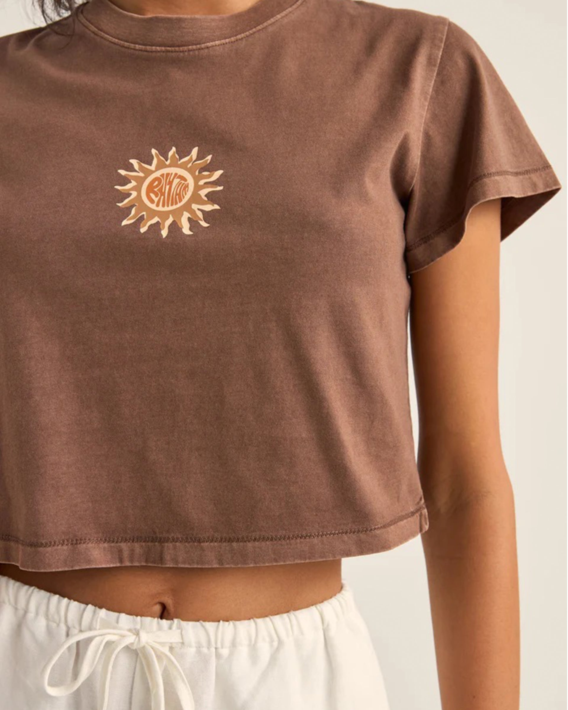 Crafted from a heavy 100% Cotton fabrication with a vintage feel and made for a casual and cropped design that pairs back with your favourite bottom styles with ease. The Sunshine Crop Crew Tee is a style your wardrobe will thank you for.