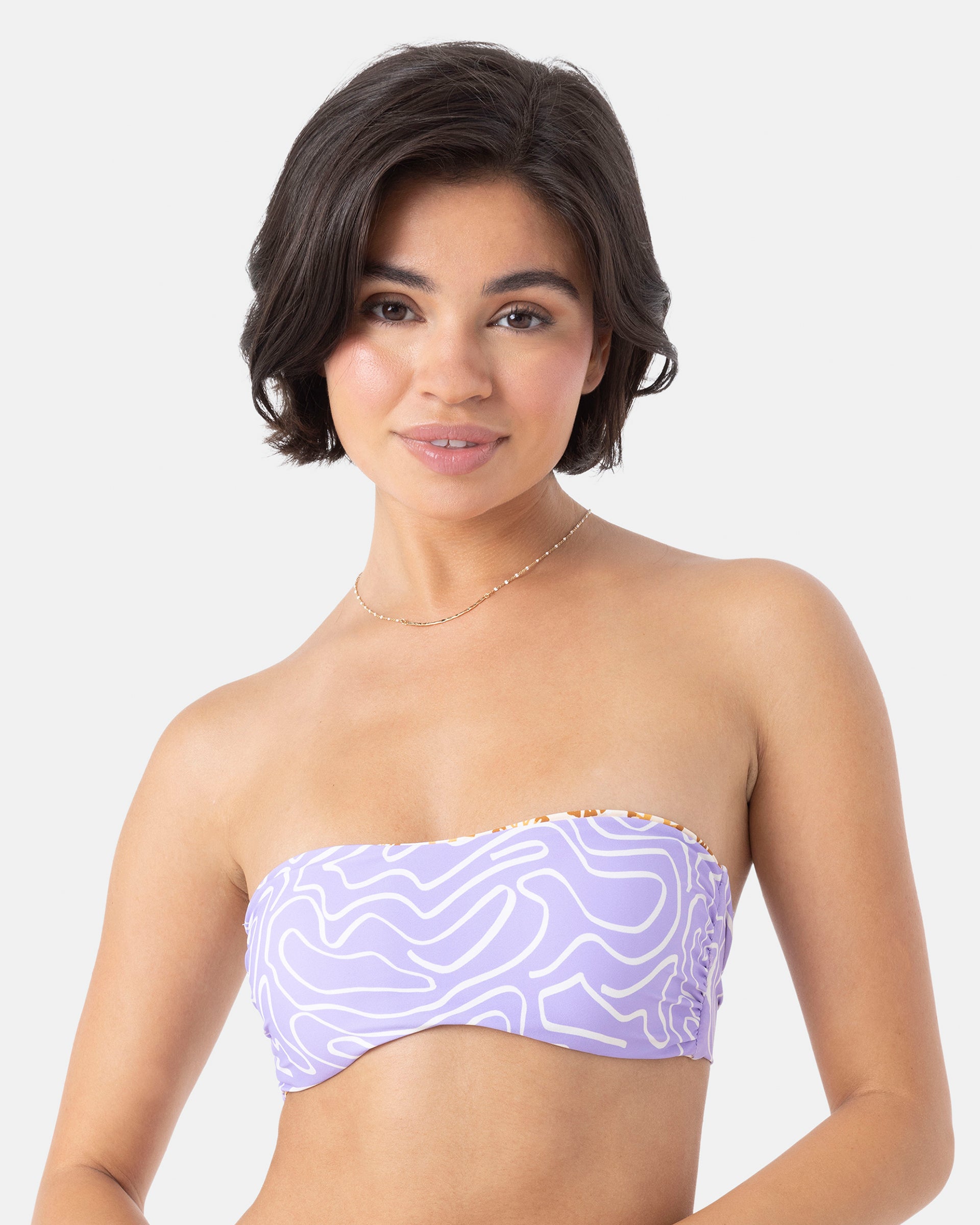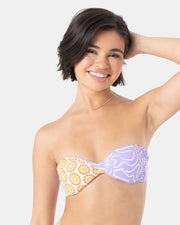 Sunshine State of Mind Reversible Bandeau Bikini Top - Brown Tile Multi